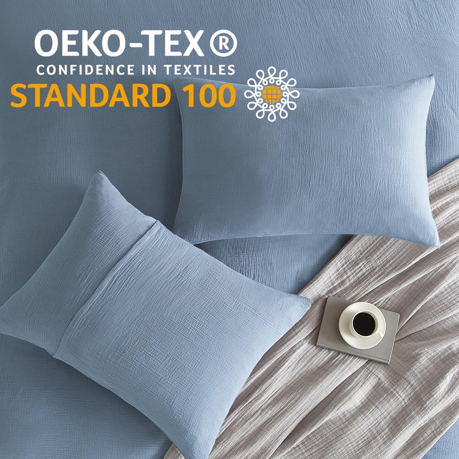 SE SOFTEXLY Muslin Pillowcases Queen Size 100% Cotton, 2 Pack Linen Like Pillow Shams with Envelope Closure, Ultral Soft and Breathable Pillow Case Covers, Blue, 20" X 30", No Filling