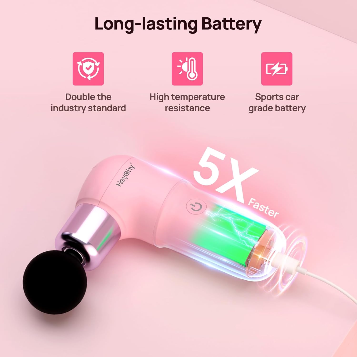 - [Super Powerful 3C Battery] This percussion muscle massage gun is equipped with a 3C battery. Compared to other products, it boasts a 3x higher power discharge rate and 5x longer battery life. Its 800mAh battery capacity also allows for up to 7 hours of continuous use.
