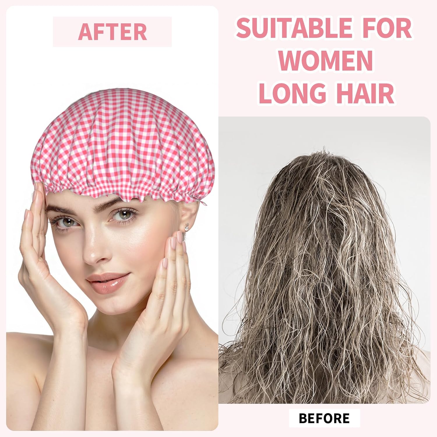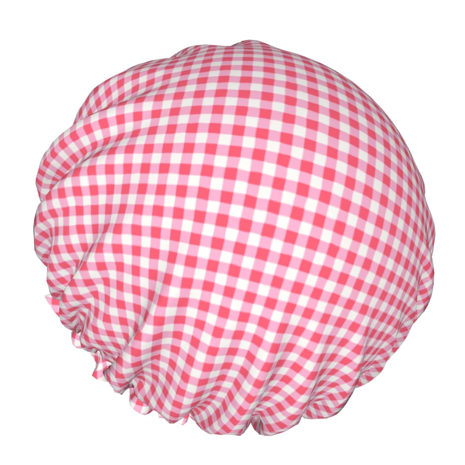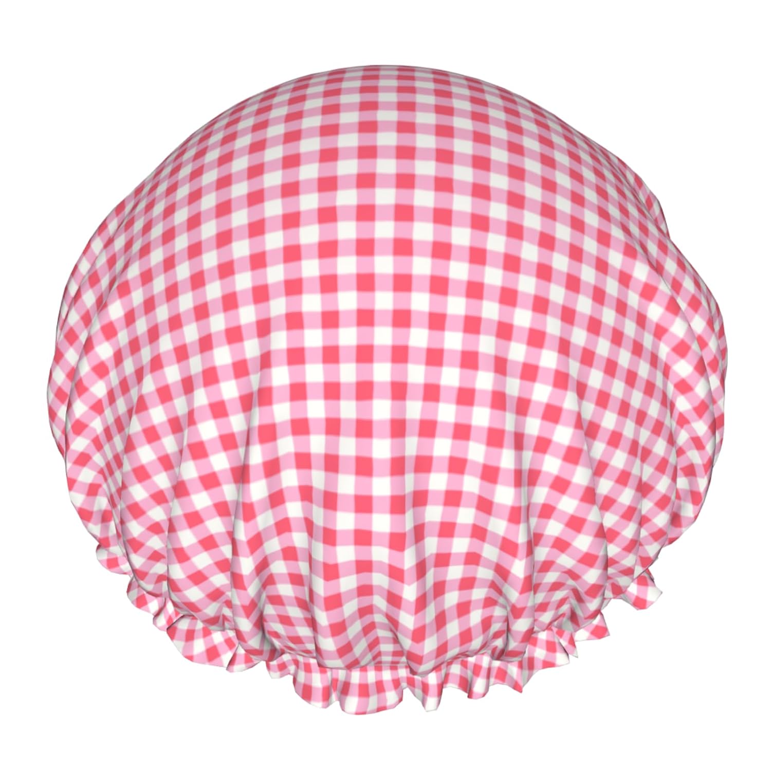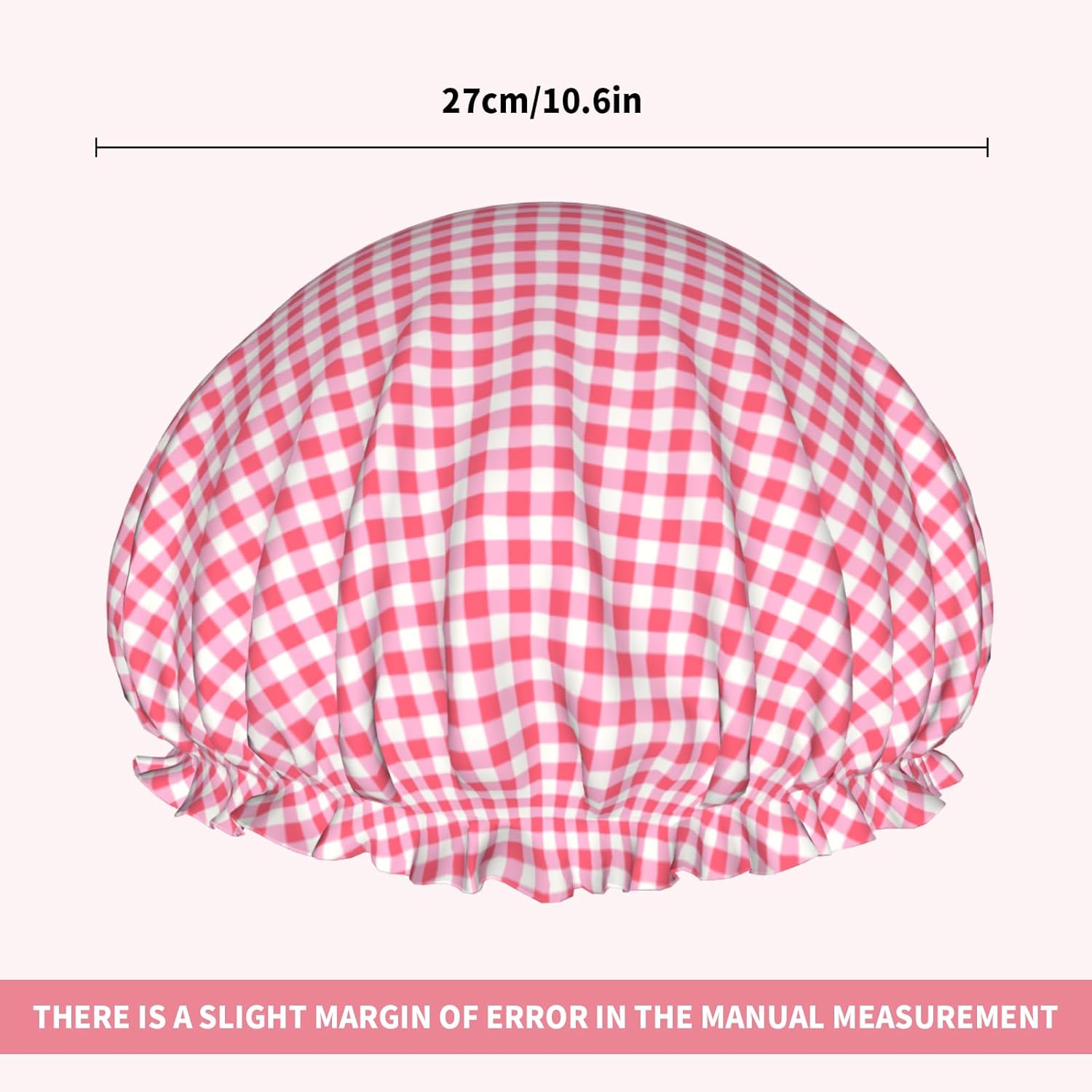 Red Pink Checkered Shower Caps for Women Red Plaid Dual-Layer Waterproof Bath Hat Classic Checkered Pattern Elastic Reusable Hair Cap for Shower Cooking Clean Makeup