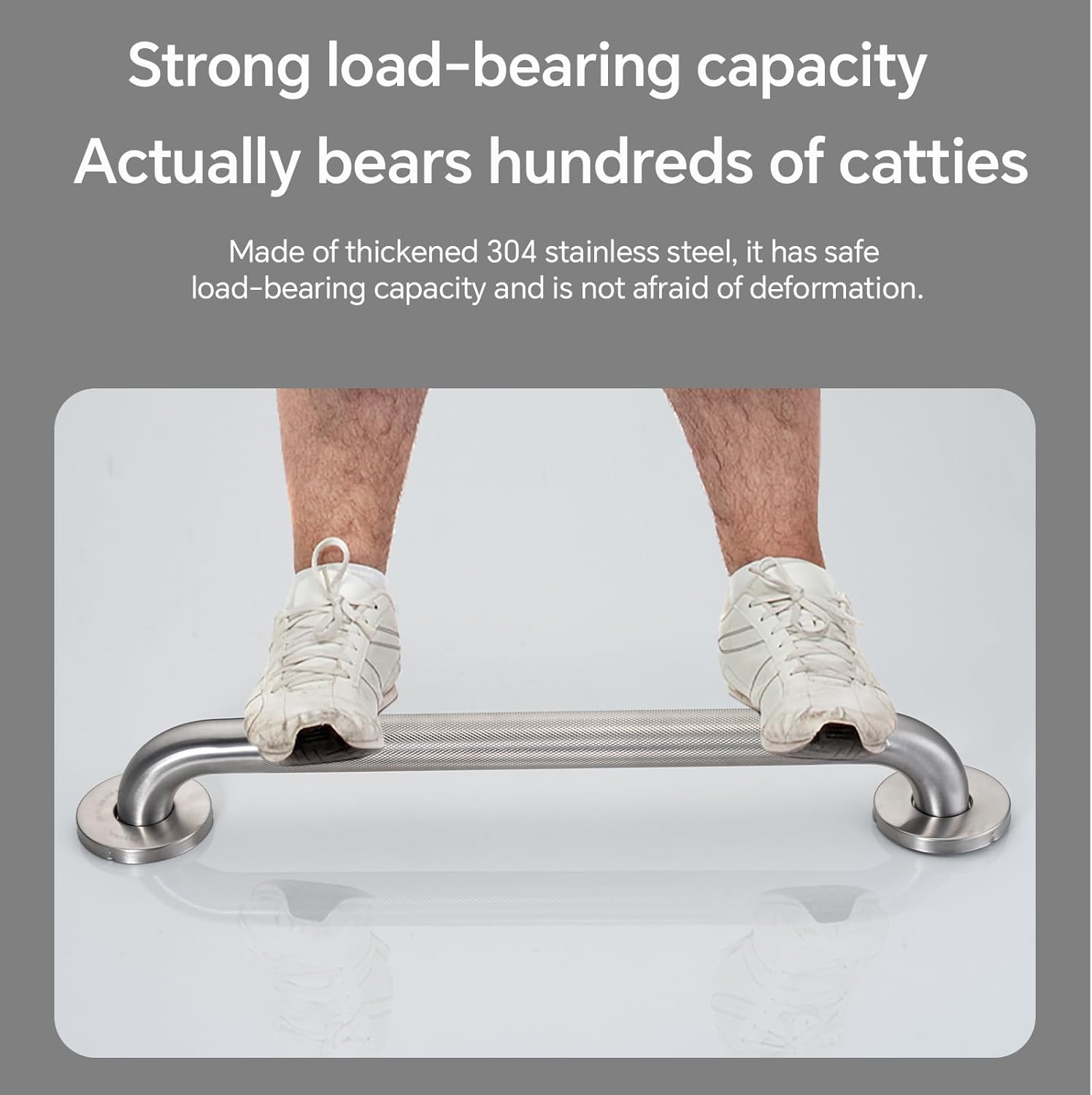 - PREMIUM CONSTRUCTION Crafted from heavy-duty 304 stainless steel, our bathroom safety grab bars are completely waterproof, rust-resistant, and built to last. With a remarkable 500-pound weight capacity, they provide essential stability for seniors, post-surgery patients, and anyone needing extra support - transforming your bathroom into a safer space.