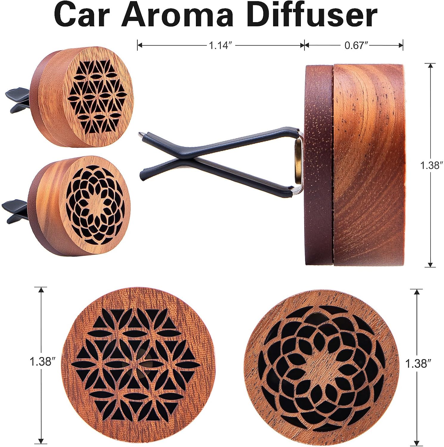 - 【Car Essential Oil Diffuser】Its base has 6 small holes with 6 built-in volcanic stones for optimal oil absorption. How to use: Add 4 drops of oil directly onto the wood (no need to open the lid)→Once absorbed, clip it onto your car’s AC vent using the air vent clip→Enjoy long-lasting fragrance! (Gentle handling recommended due to wooden construction.)