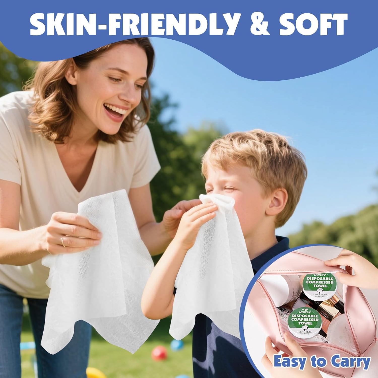 - 【Skin Friendly & Hypoallergenic】Our compressed towel tablets is soft and hypoallergenic, they won't irritate your skin and they can quickly clean your face, neck, shoulders, arms, hands, legs, etc. They can also be used for babies and pet