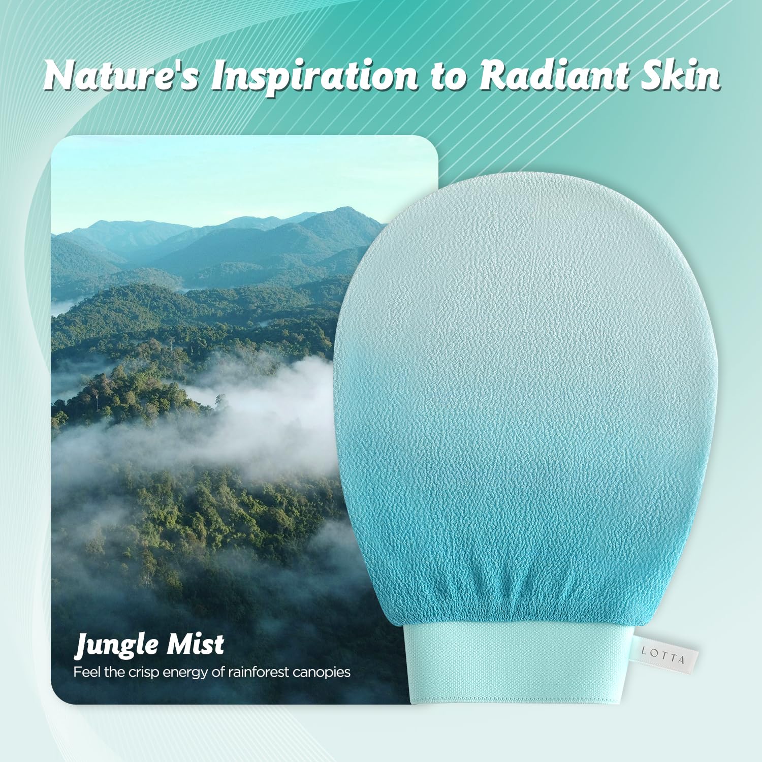 LOTTA Dreamy-Glow Deep Exfoliating Glove - Vegan Dead Skin Removal Body Scrub Mitt Bath Washcloth for Women Shower Exfoliation (Jungle Mist)