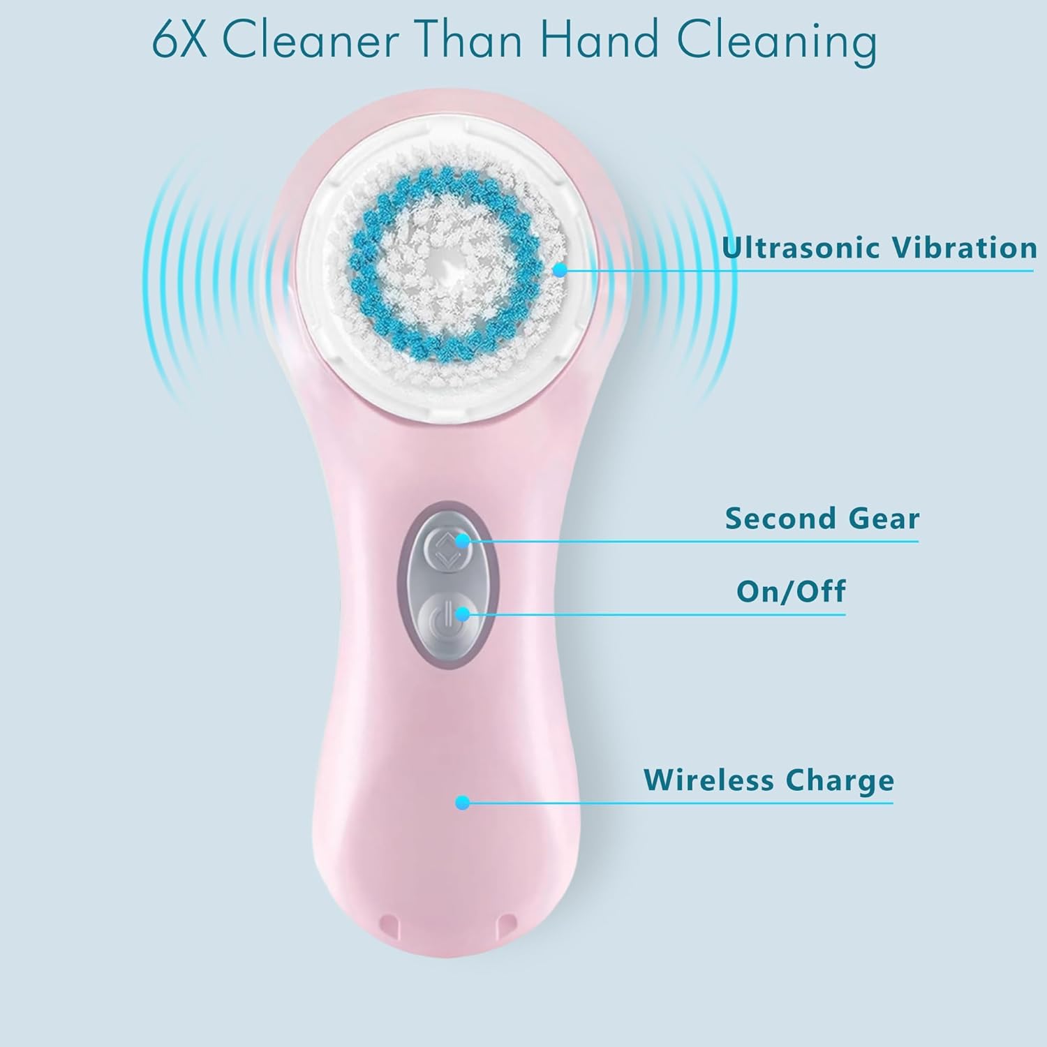 - 2-Speed Cleansing - This face scrubber exfoliator offers 2 adjustable speeds to meet all skincare needs. The low-speed setting provides gentle exfoliation for daily use, while the high-speed mode delivers a deep clean. Our rechargeable facial cleansing brush brings health, radiance and vitality to your skin - offering 6 times more effective than hand washing.