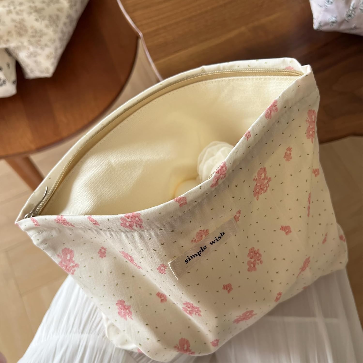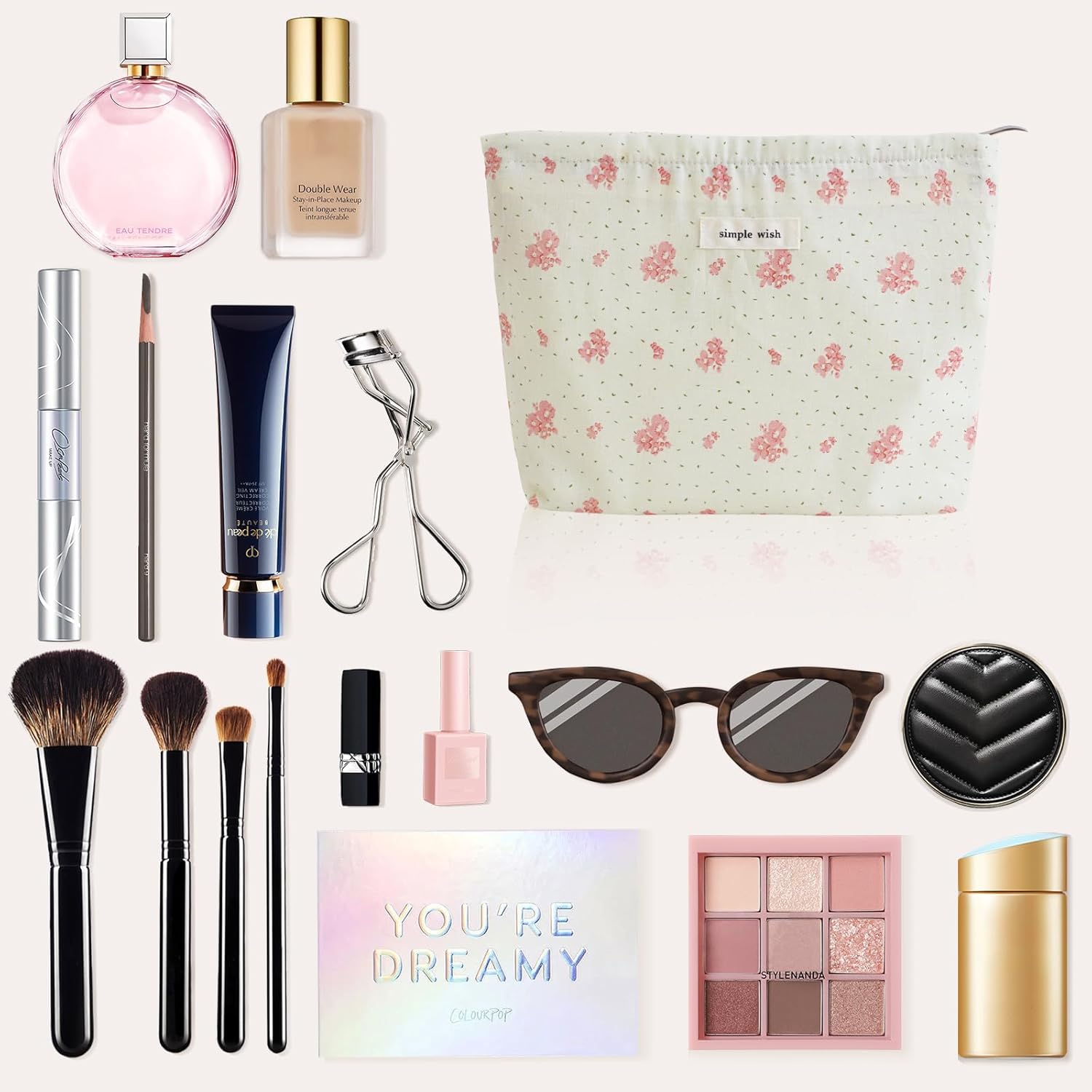 Wudygirl Cute Makeup Bag for Women - Travel Cosmetic Bag with Zipper Makeup Pouch Floral Make up Organizer Handbag Aesthetic (Pink Floral)