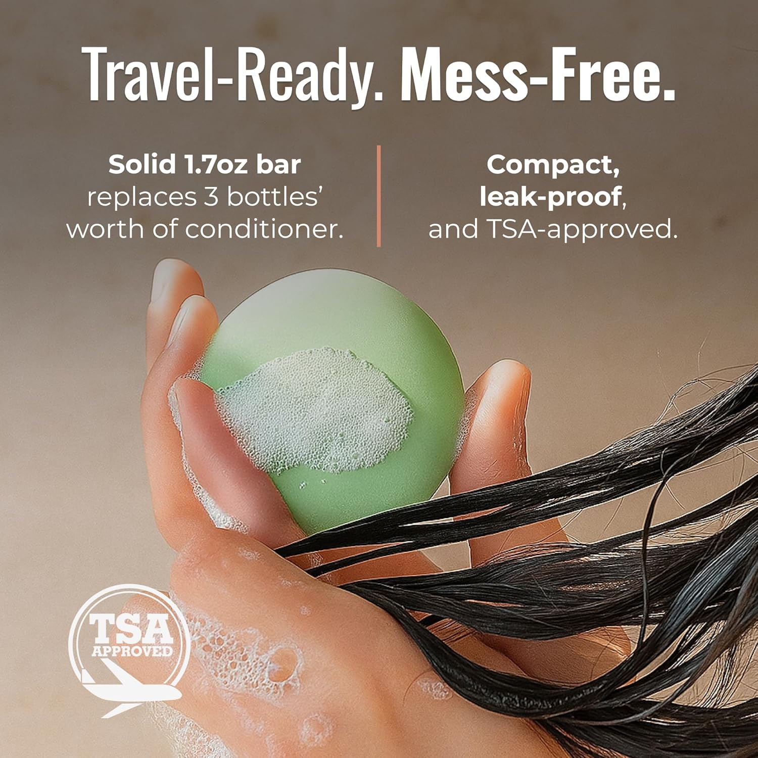 - COMPACT, TRAVEL-FRIENDLY DESIGN: Perfect for on-the-go lifestyles; this solid hair conditioner bar fits in any toiletry bag, is TSA approved, and won’t leak or weigh you down