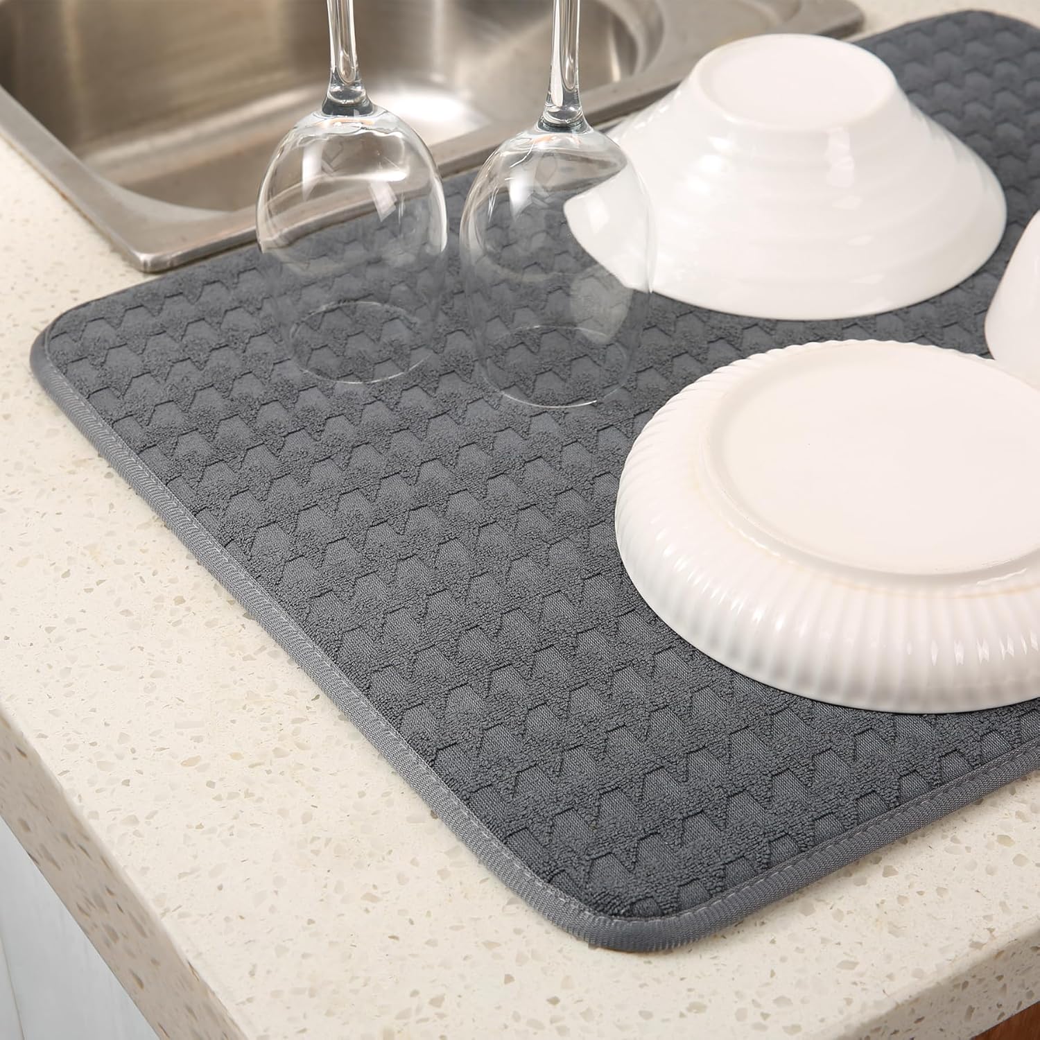 - LARGE SIZE DESIGN: Each kitchen drying mat measures 20 × 15 inches, spacious area allows you to dry multiple plates simultaneously, saving time and effort.