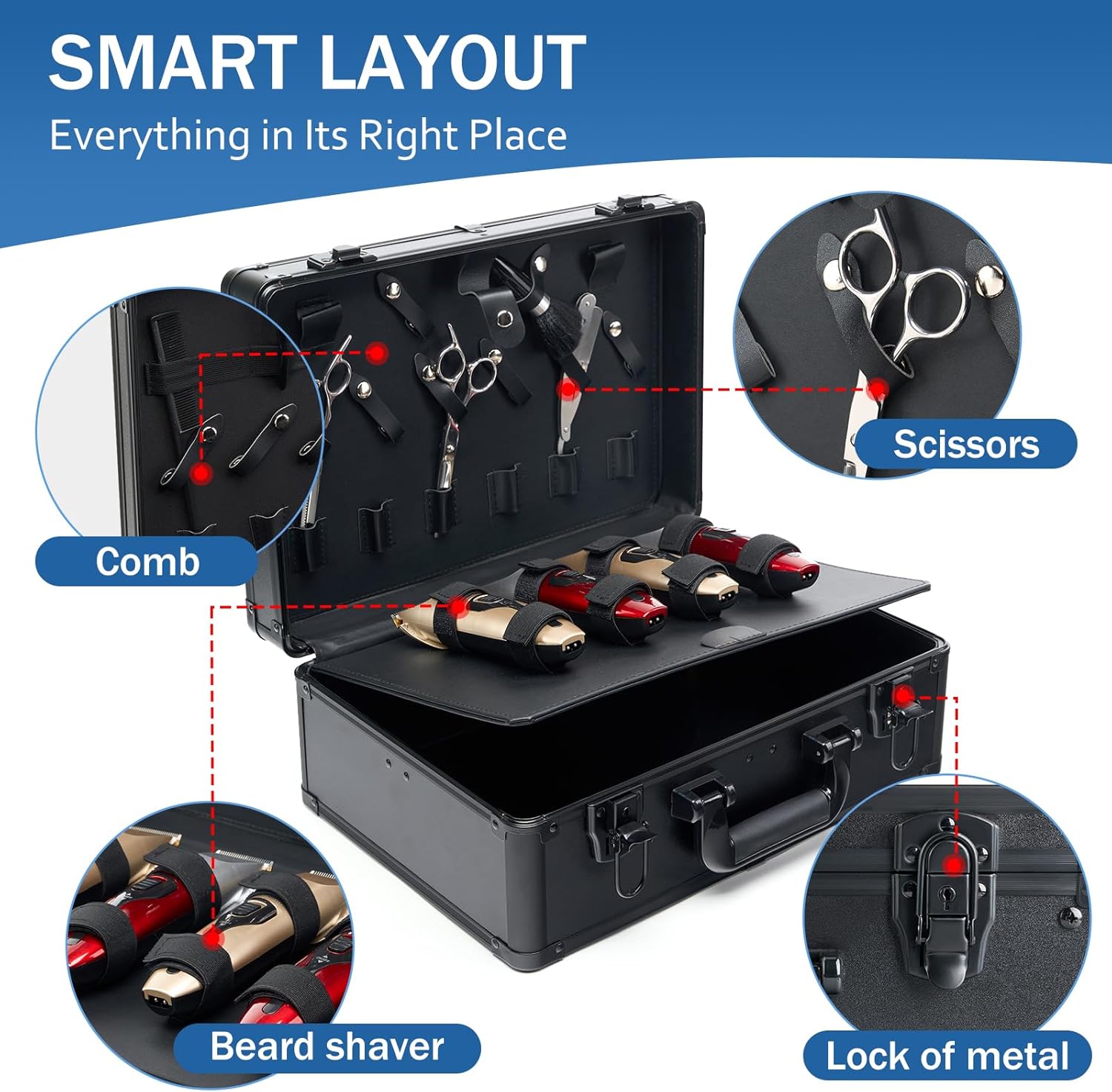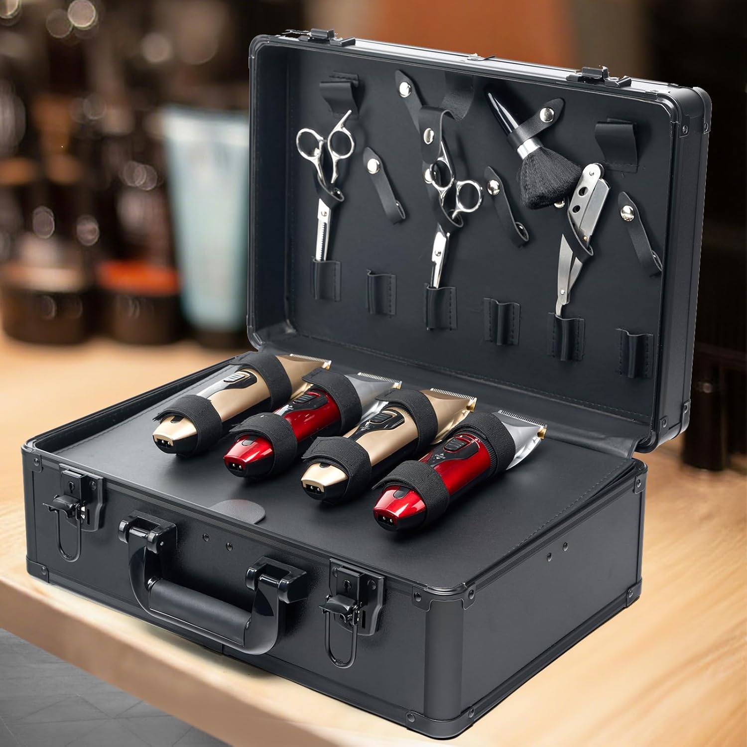 - PREMIUM CONSTRUCTION: High-grade aluminum alloy frame with fire board surface and soft interior lining for professional barber tool storage and protection