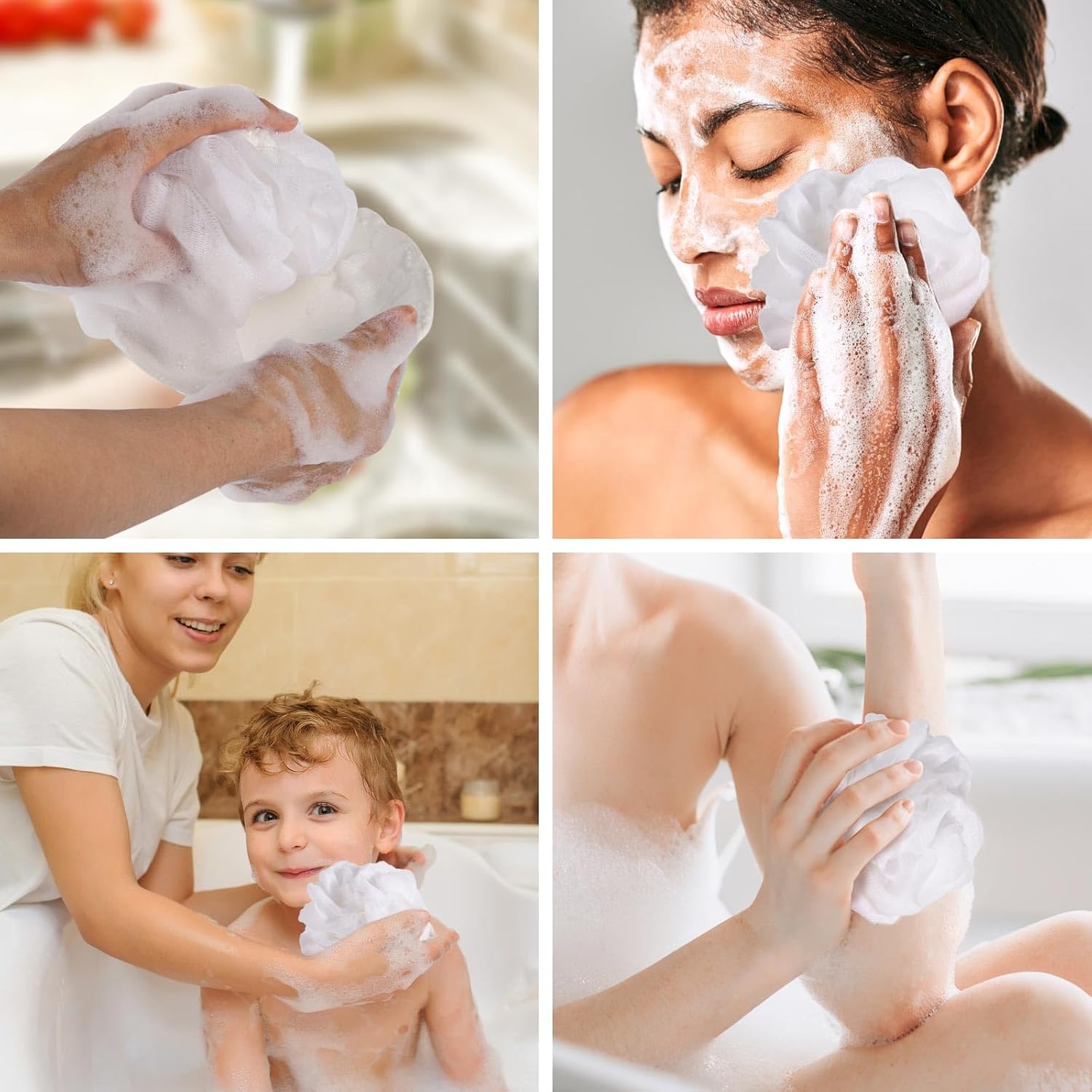 - Soft & Gentle on Skin:Made from fine, non-abrasive PE mesh fibers, providing a smooth lather without being too harsh. Resistant to tearing and fraying, lasting longer than natural loofahs