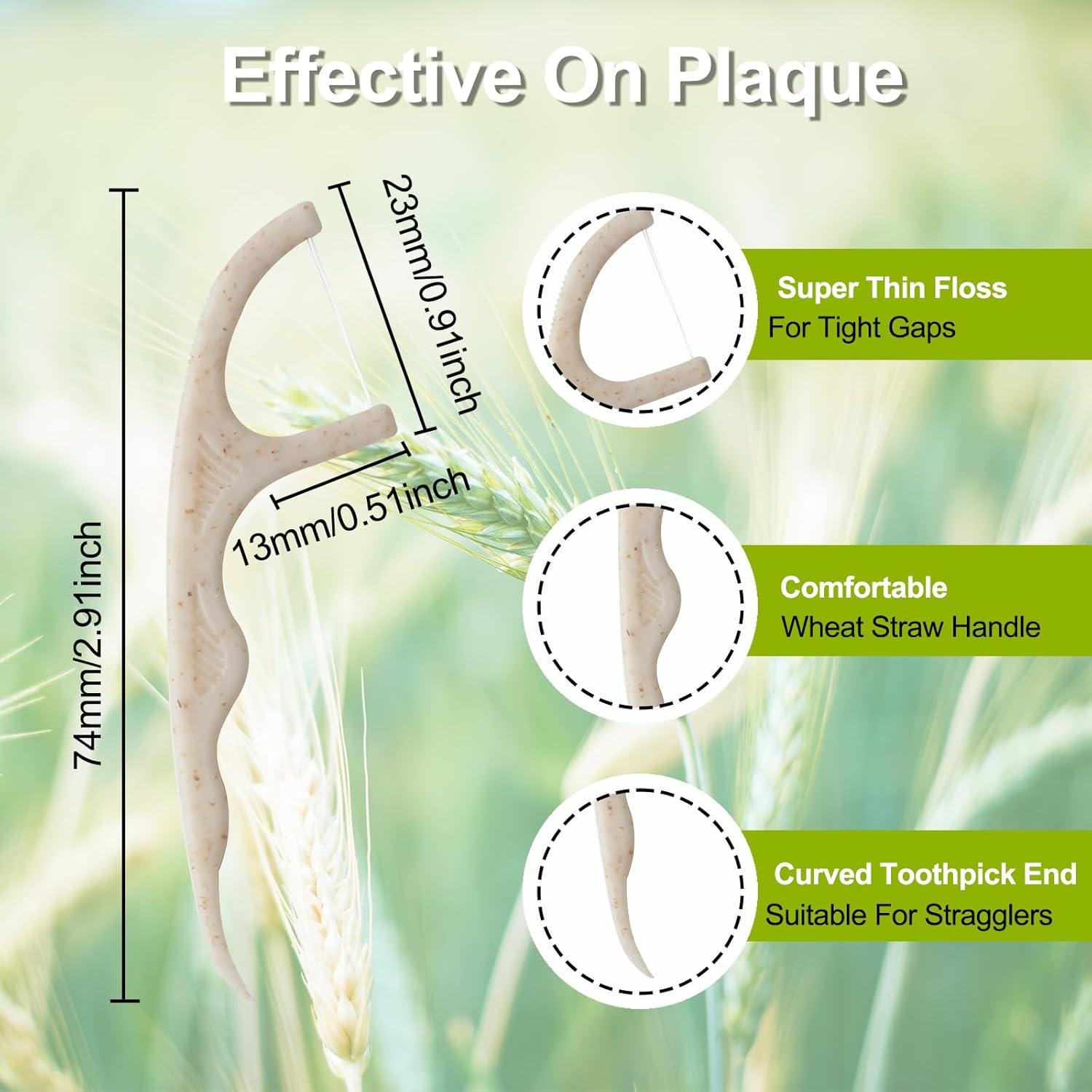 - Wheat Straw Floss Sticks - Codweny Biodegradable Dental floss picks made of eco-friendly straw starch, Enjoy superior teeth cleaning experience and get rid of the smallest food particles stuck in between your teeth with base natural dental floss picks.
