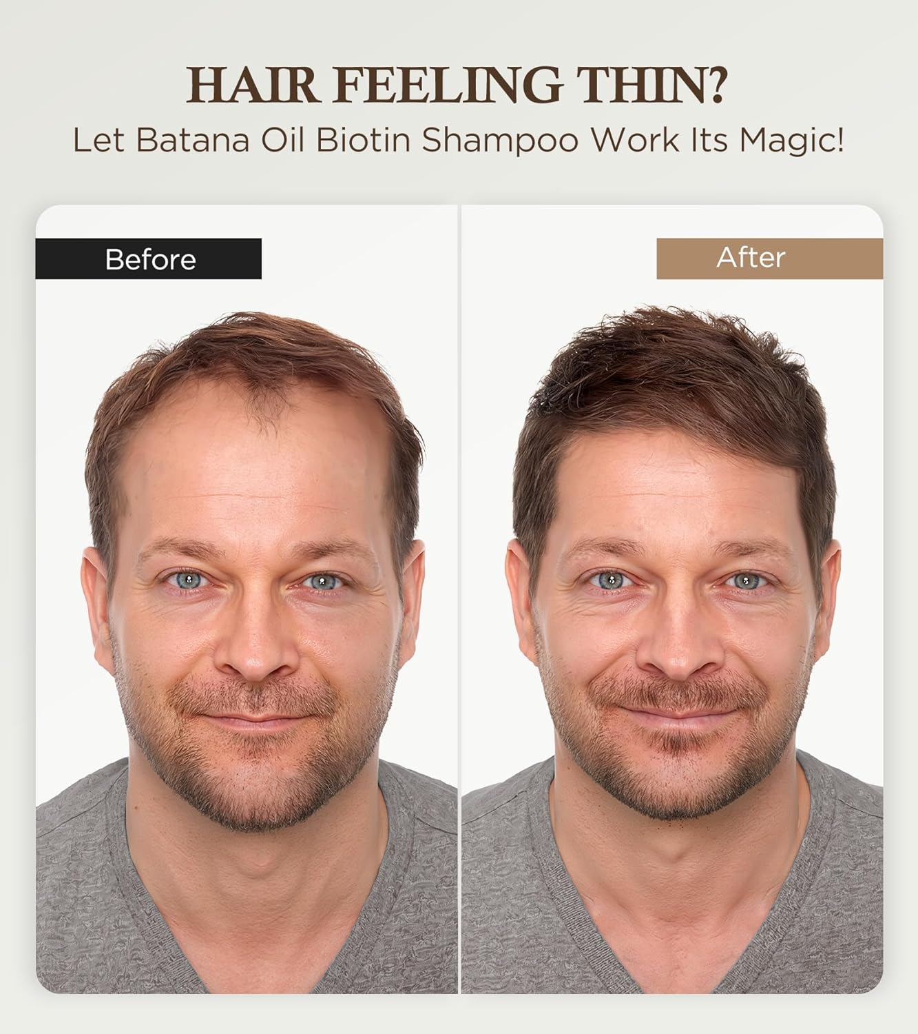 - 8,000 NEW HAIR STRANDS IN JUST ONE MONTH! More than just 99% pure biotin, Gowilove biotin shampoo is infused with clinically proven thuja leaf extract & Batana to repair weakened keratin, revive damaged follicles & boost hair growth up to 3X faster. Plus, it's fortified with ginseng and ginger root. With five synergistic ingredients working together, this hair growth shampoo helps enhance scalp circulation, strengthen roots & reduce hair loss by up to 80%. No more worrying about finding more hair in your brush than on your head. Say goodbye to the fear and insecurity caused by thinning hair!