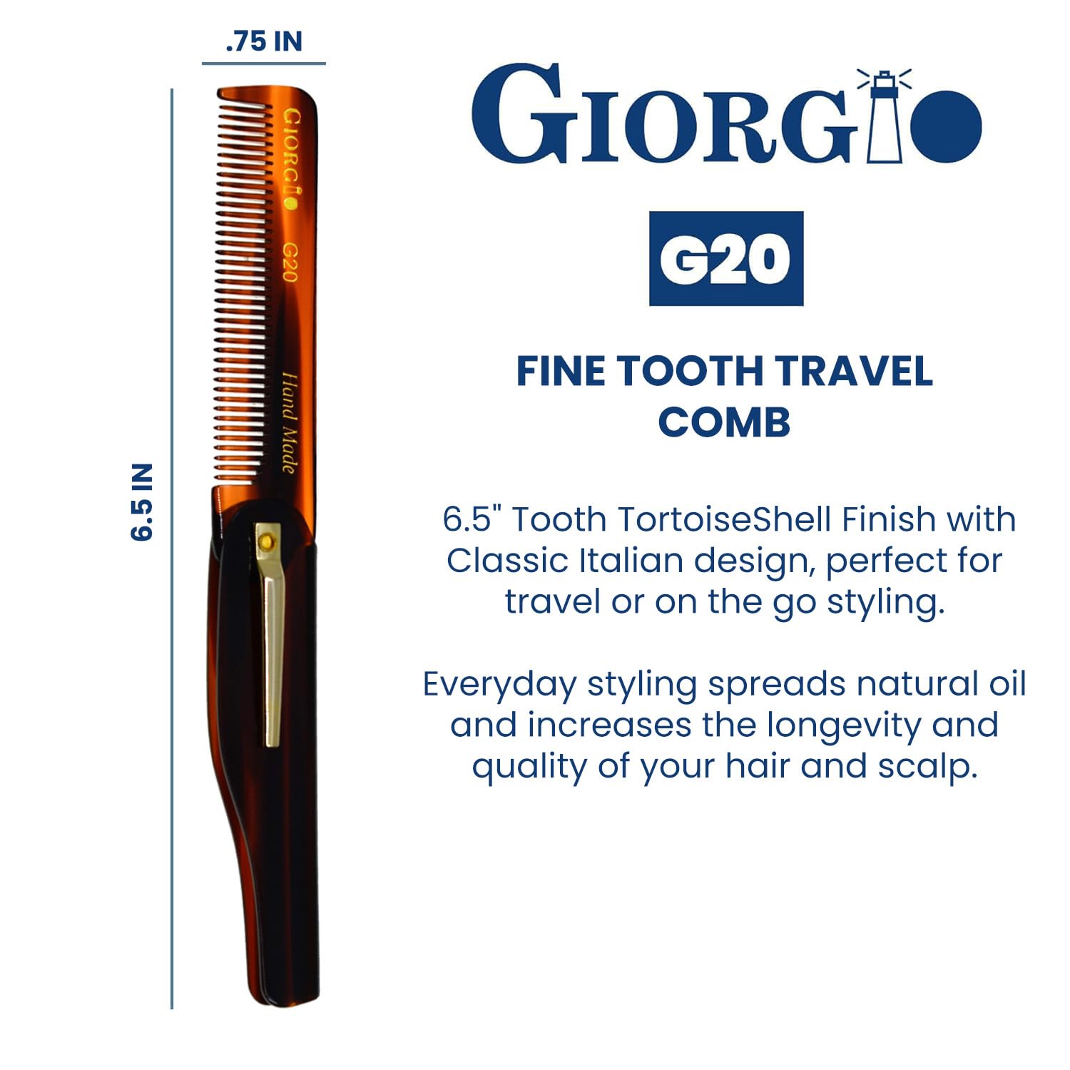 Giorgio G20 Folding Mustache and Beard Comb 6.5 Inch - Fine Tooth Travel Comb for Everyday Styling and Hair Care - Handcrafted Sawcut and Hand Polished (Tortoiseshell)