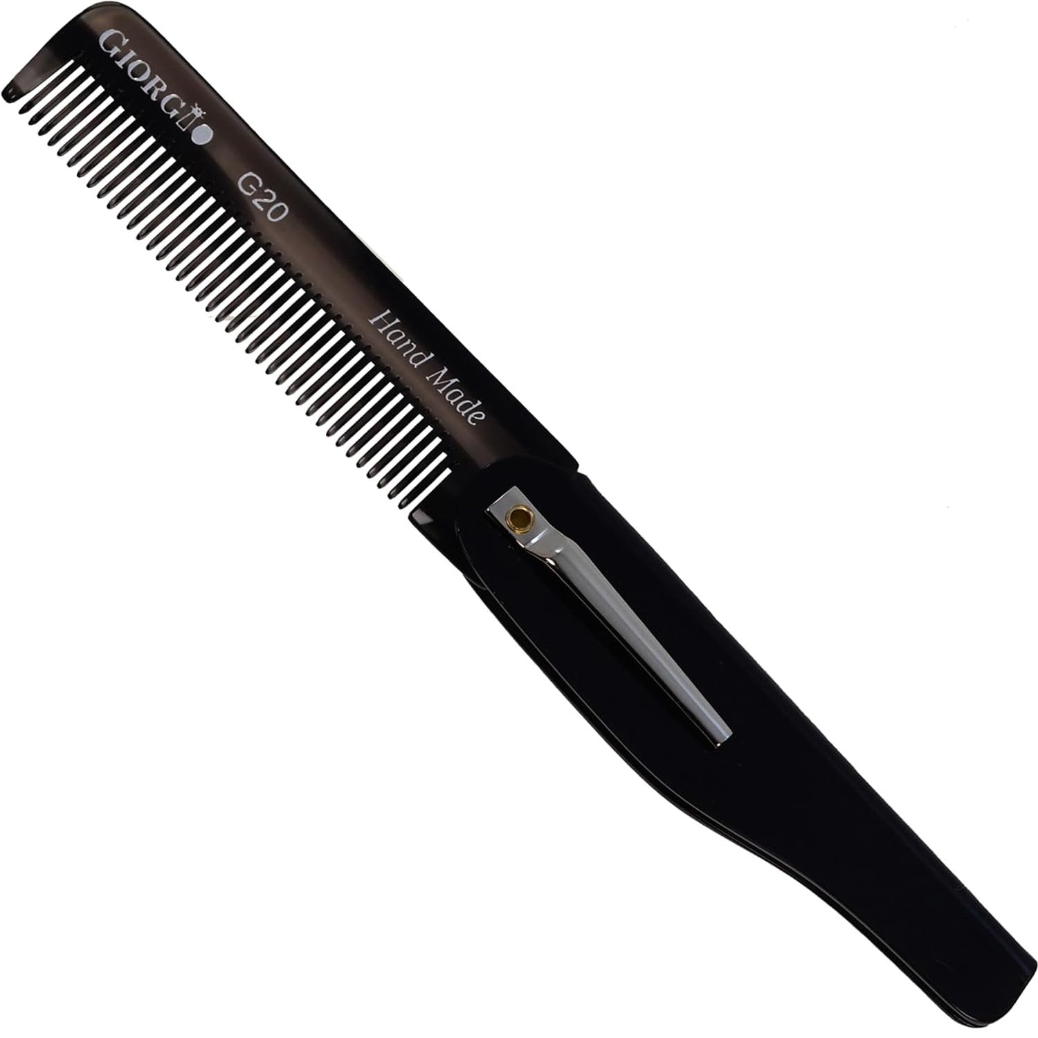 Giorgio G20 Fine Tooth Folding Mustache and Beard Comb - Small Pocket Comb for Everyday Hair Care and Styling - Sawcut and Hand Polished (Black Graphite)