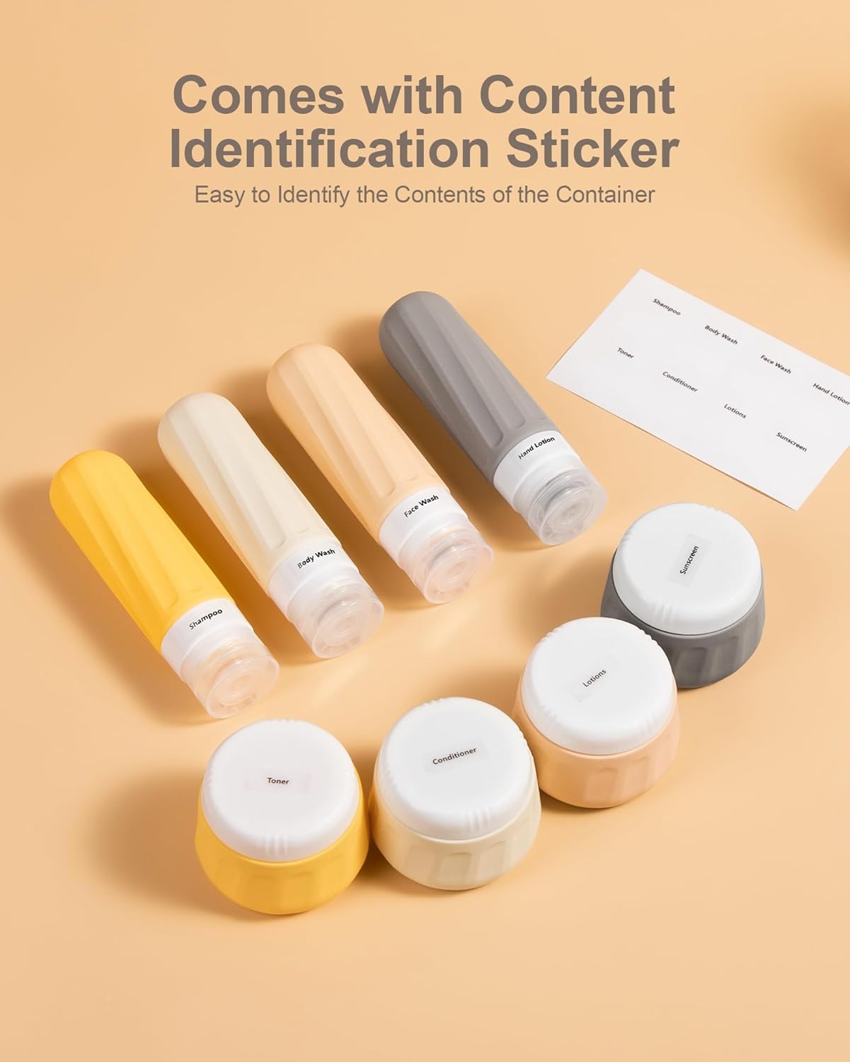 Travel Bottles for Toiletries 8 Pack, Travel Size Toiletries, Tsa Approved Travel Size Containers 3oz, with Travel Essentials Clear Bag, Leak Proof Silicone Squeezable Creams Jars