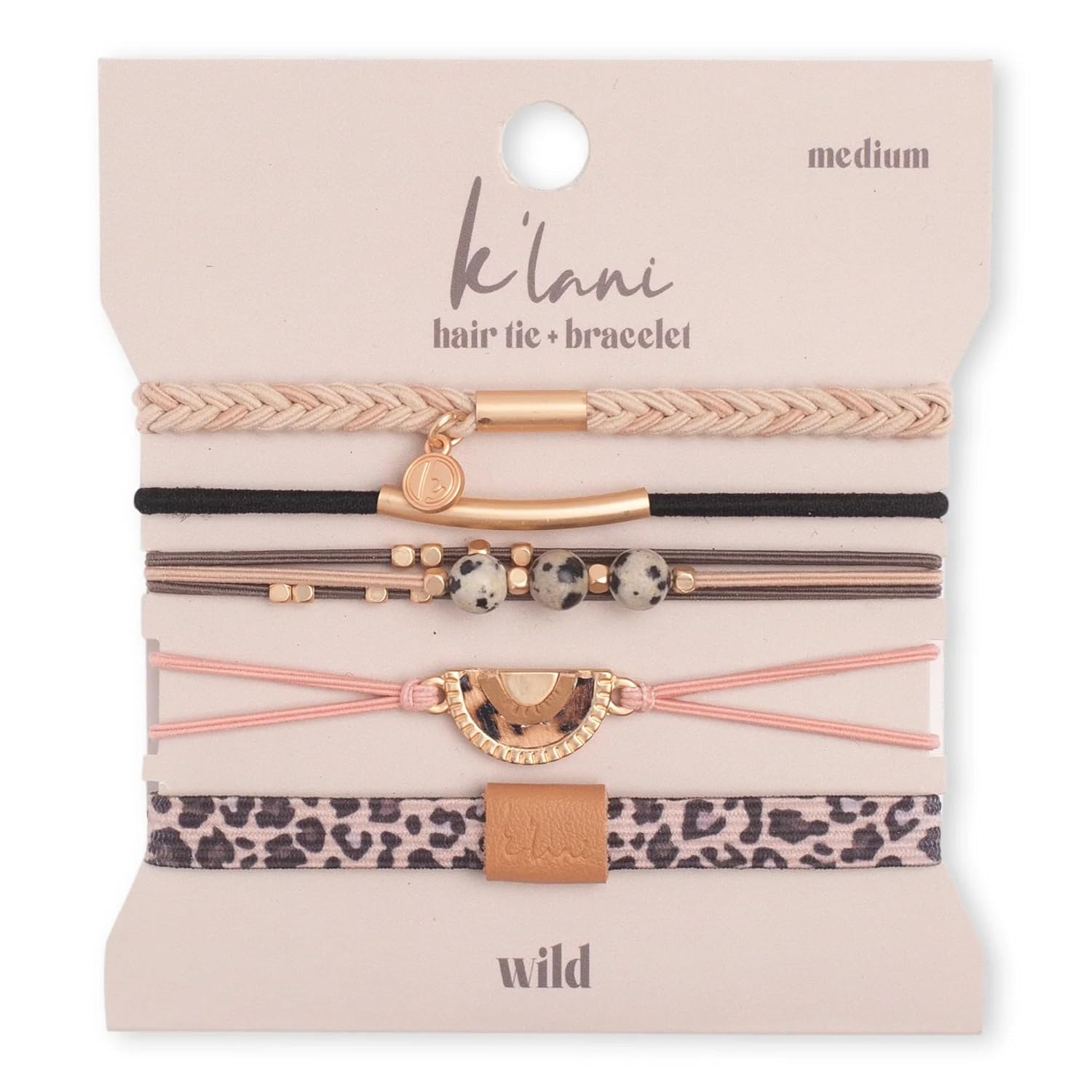 K'lani Wild Bracelets for Women – Elastic Bracelets and Boho Hair Ties – Cute Hair Ties for Women and Hair Tie Accessories – Stylish Bracelets Boho Style for Hair and Wrist – Set of 5 (Small)