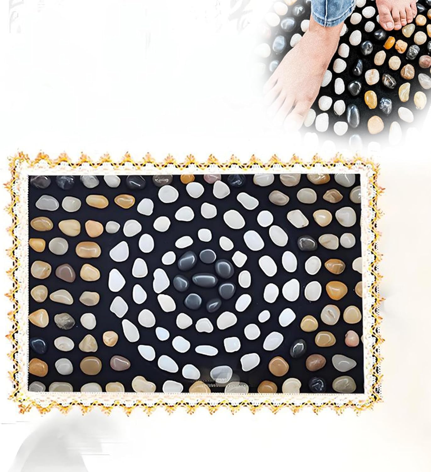 - Natural Pebble Design for Lasting Relief: Features a flexible fabric base with securely attached pebbles and an elegant decorative lace border. This durable construction ensures a consistent and relaxing massage every time you walk on it, helping to reduce stress and improve overall sleep quality