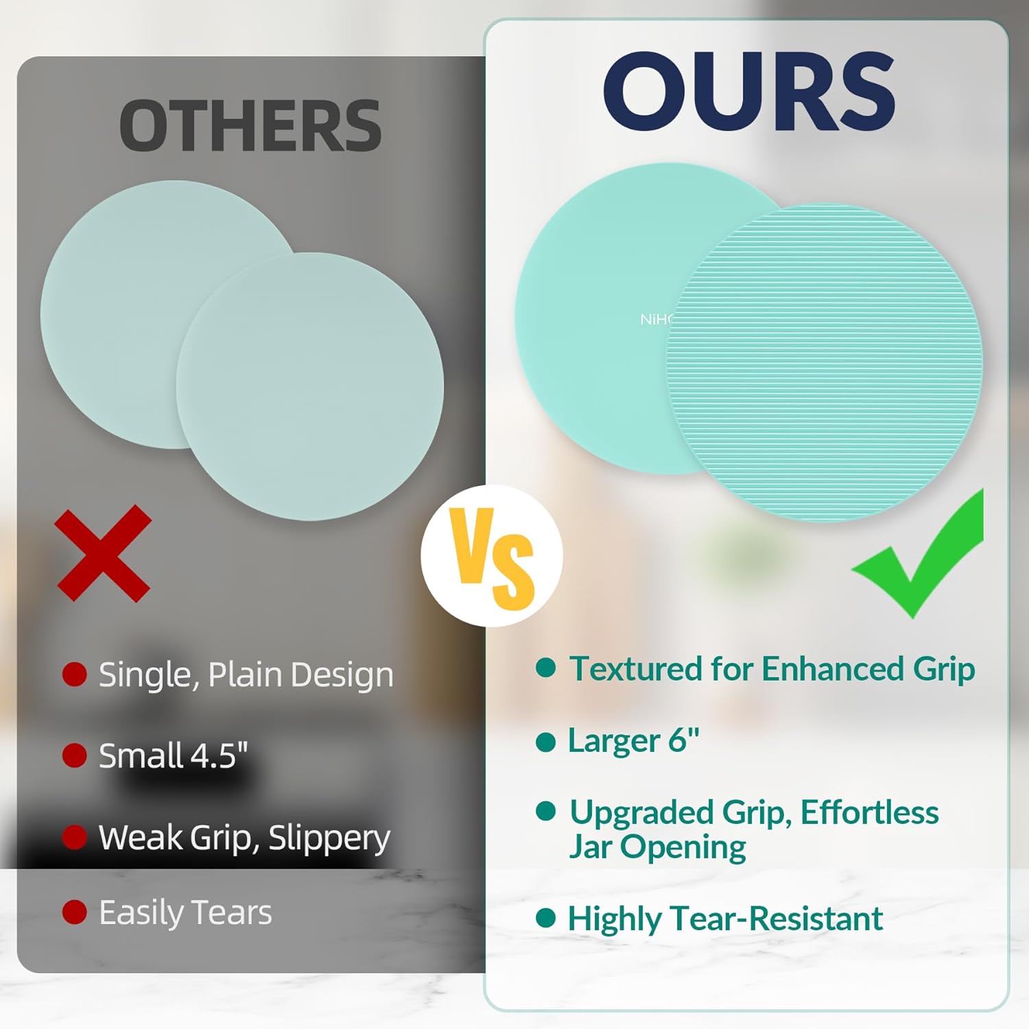 NIHOME Silicone Jar Opener – 6 Inch Large Anti-Slip Grip Pads, Premium 100% Food-Grade Silicone, Stylish Designer Colors, Multi-Purpose Heat-Resistant Mat & Coaster, Set of 4 (Macaron Colors)