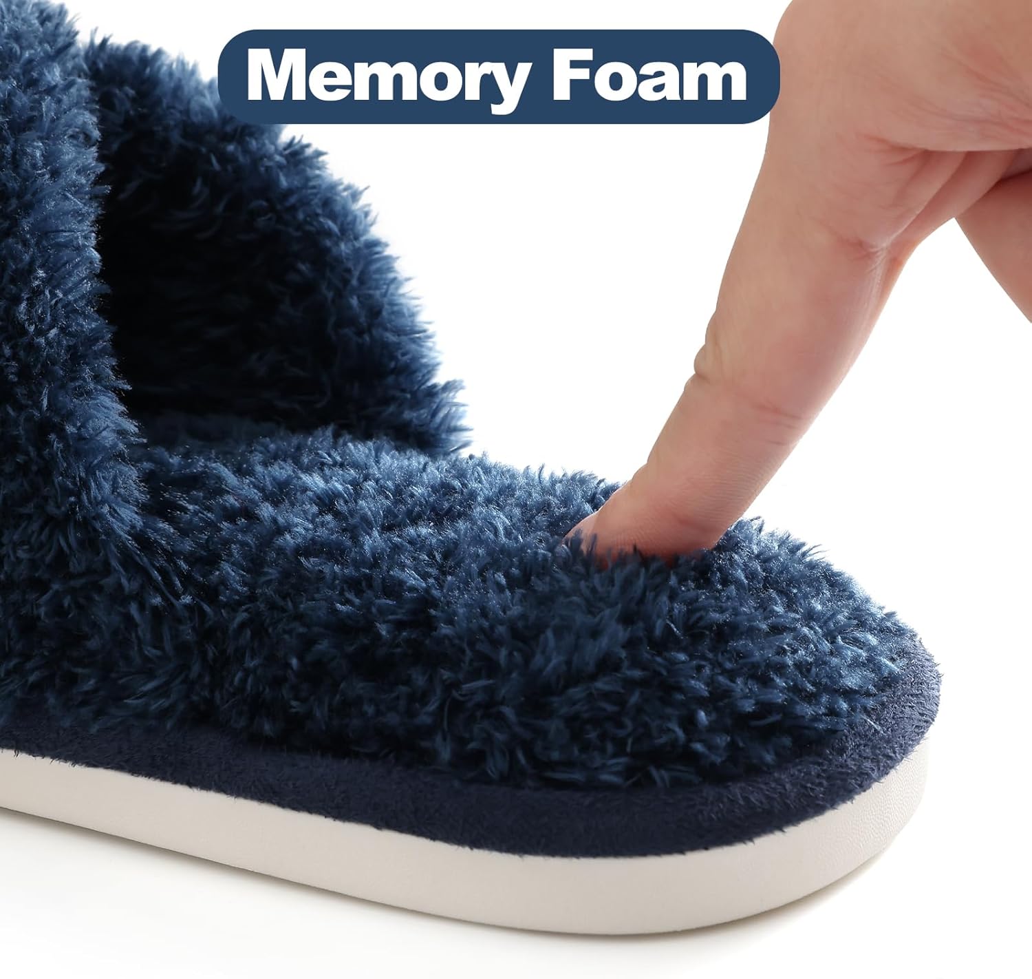 Evshine Women's Fuzzy Slippers Cross Band Memory Foam House Slippers Open Toe