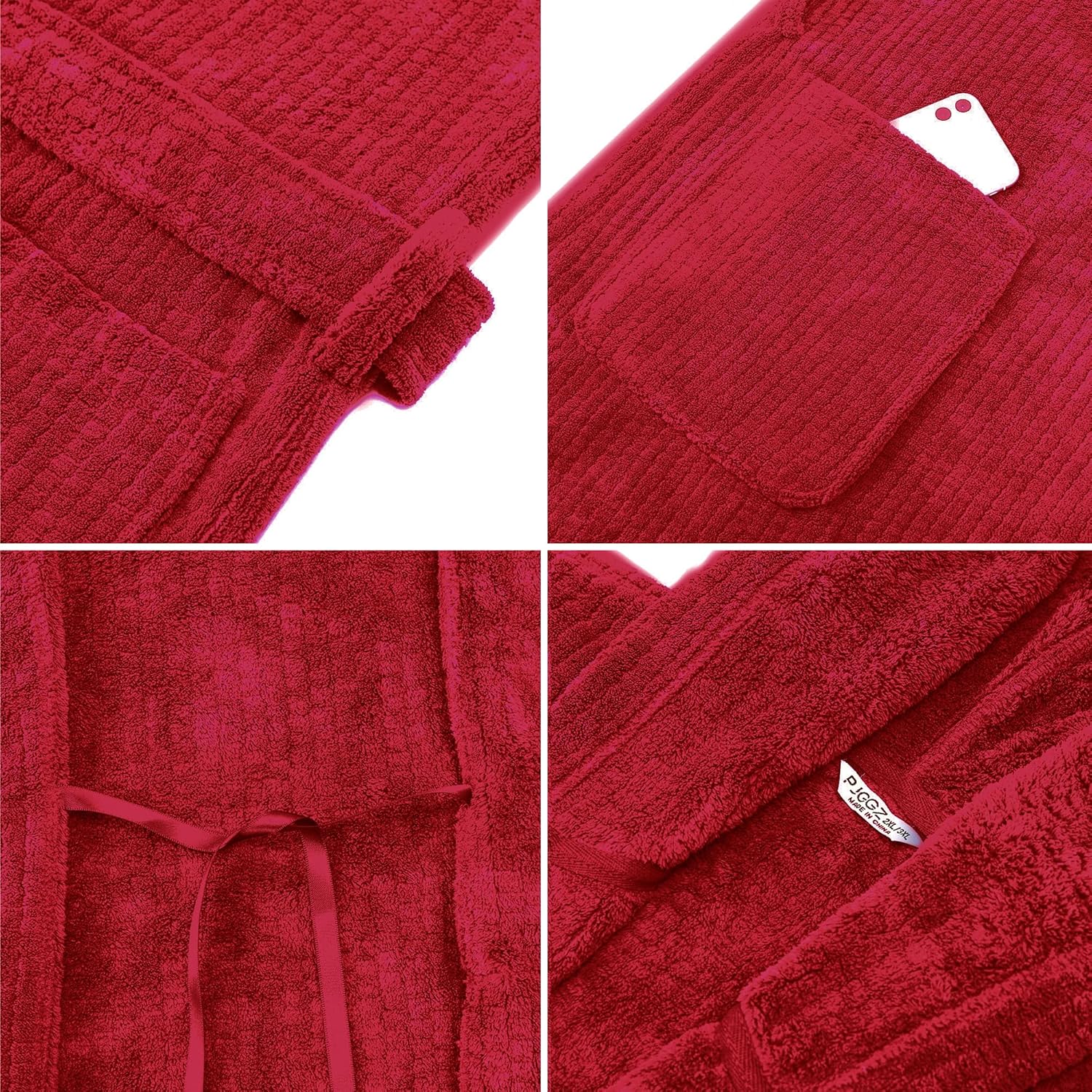 - HOODED BATHROBES WITH POCKETS: The hood is perfect for keeping the head warm during the chilly mornings. Slip front pockets are perfect for storing all your stuff with convenience, or just for keeping your hands warm in this bathrobe