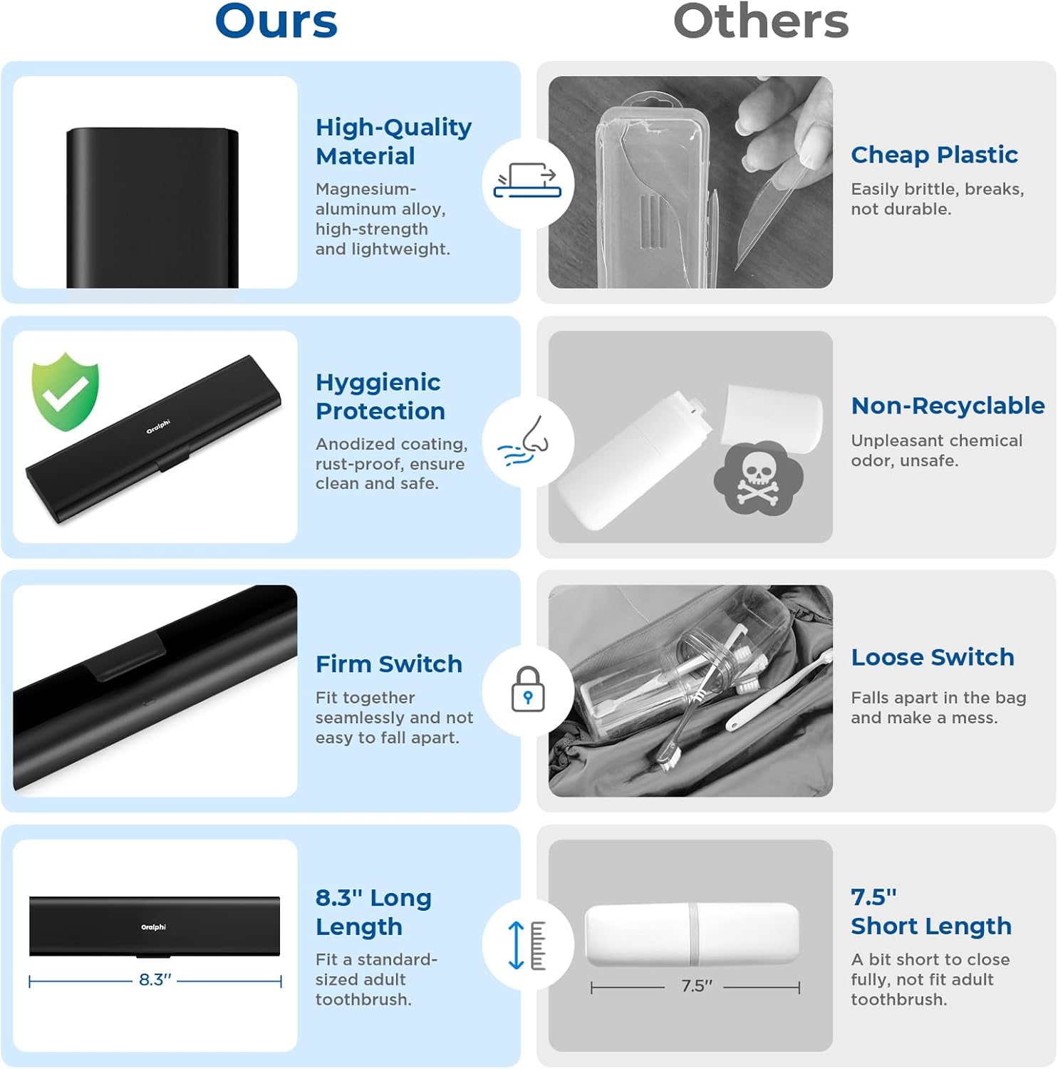 - High-Quality Material: Made of food-grade durable aluminum alloy, our metal travel toothbrush case is safe, non-toxic, odorless, and rust-free. Say goodbye to the common problem of the brittleness of plastic, as our toothbrush container stands the test of time with its robust build. Ensures your toothbrush stays clean and safe