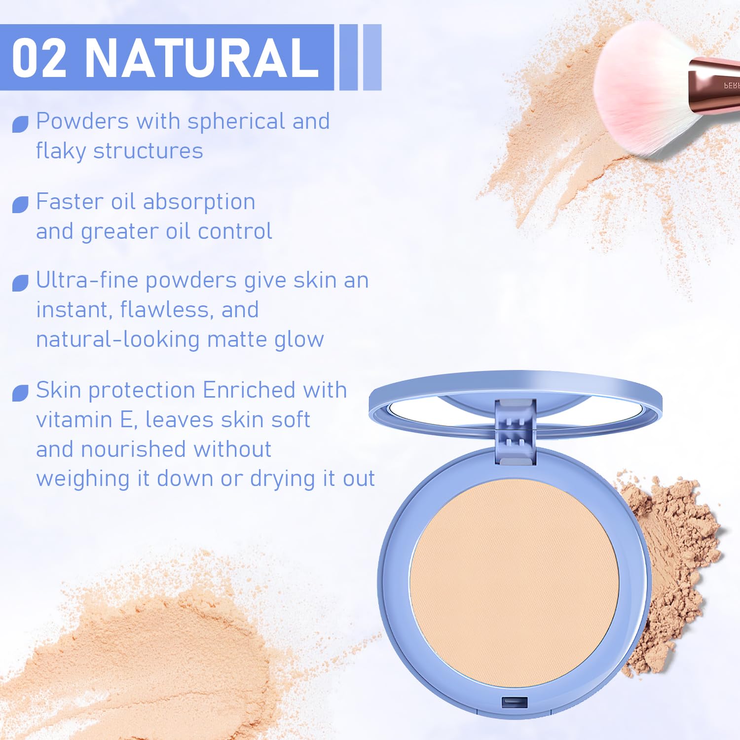 Maycheer Face Powder, Maycheer Setting Powder, Lasting Waterproof Pressed powder Compact, Oil Absorbing Pressed Powders Compact for Face,Lightweight,Residue-Free(02 NATURAL BEIGE)