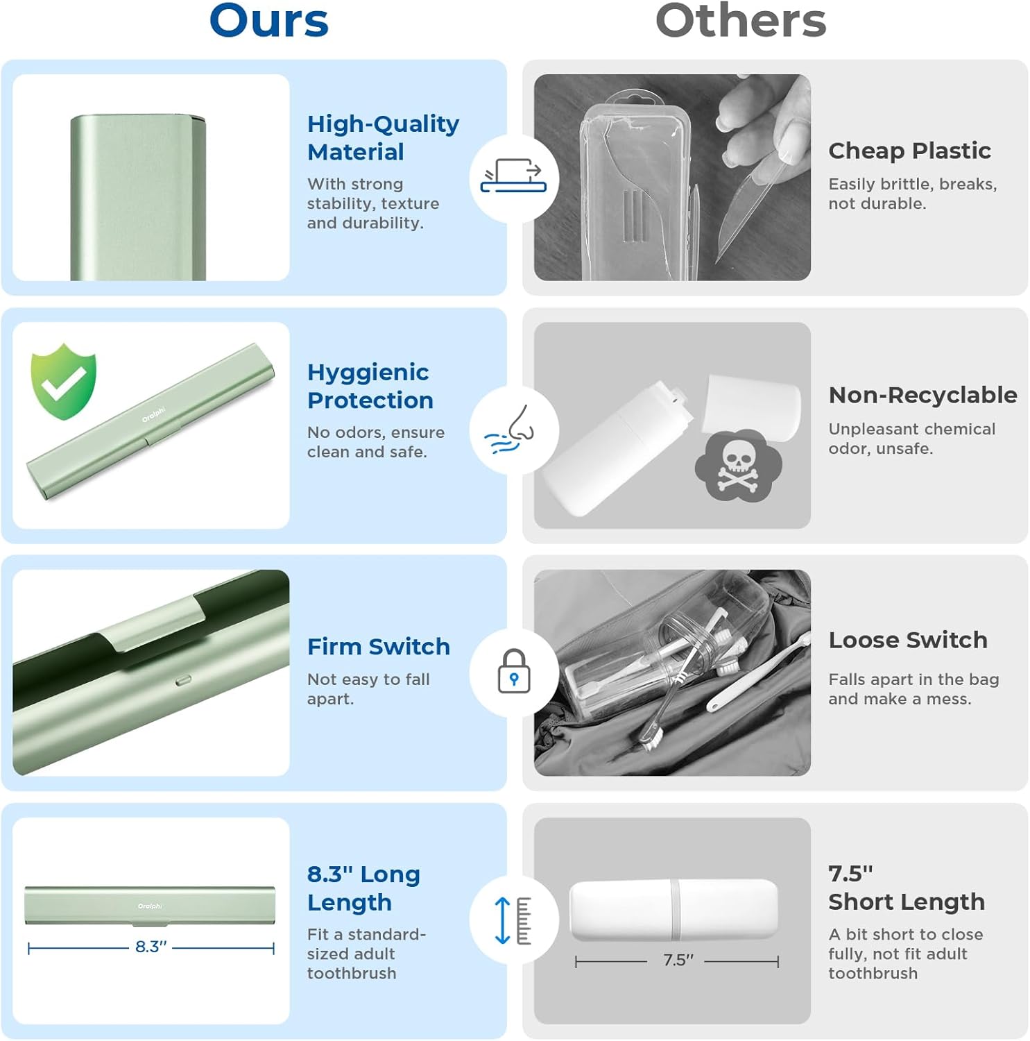 - High-Quality Material: Made of food-grade durable aluminum alloy, our travel toothbrush case is safe, non-toxic, odorless, and rust-free. Say goodbye to the common problem of the brittleness of plastic, as our toothbrush container stands the test of time with its robust build. Ensures your toothbrush stays clean and safe