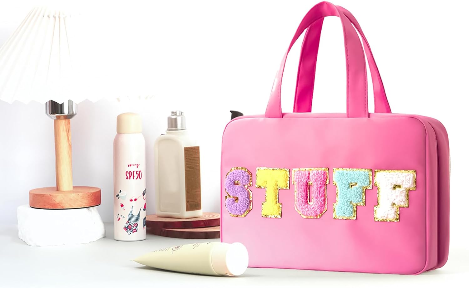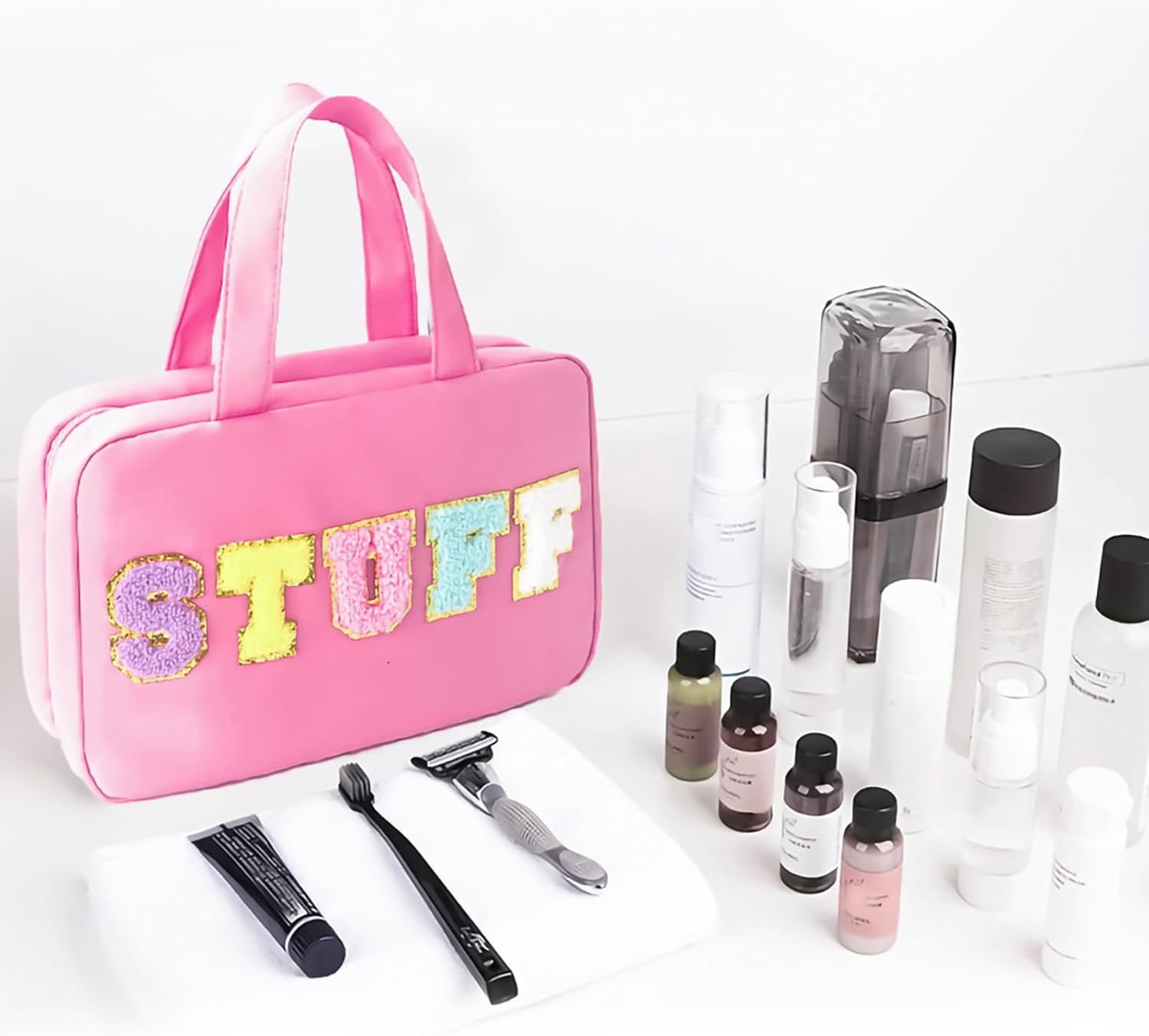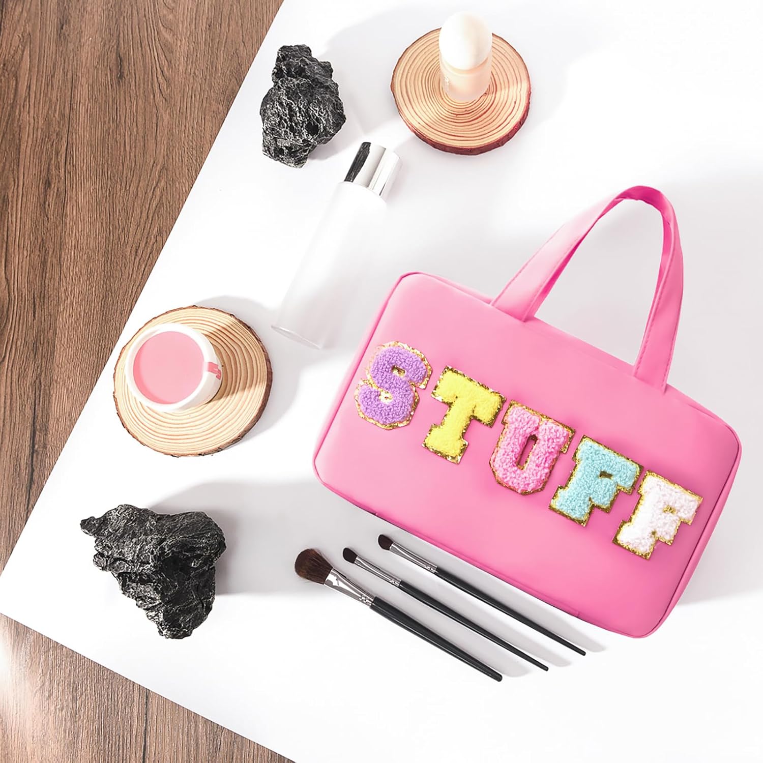 - HIGH QUALITY: This toiletry bag is made of high-quality polyester with strong stitching and durable materials. It's durable, easy to use, waterproof, stain-resistant, and scratch-resistant. Fashion trends chenille letter cosmetic bag, preppy, more women love it. Its stylish design will make you love it even more and make your life more beautiful