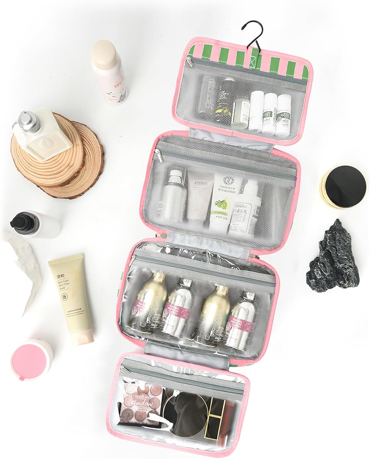 Toiletry Bag for Women Travel Water-resistant Cosmetic Bag Fashion Stripes Makeup Bag with Hanging Hook Preppy for Store Toiletries Cosmetic Accessories Large Capacity Green
