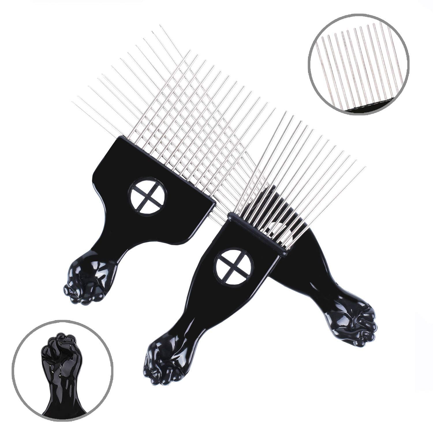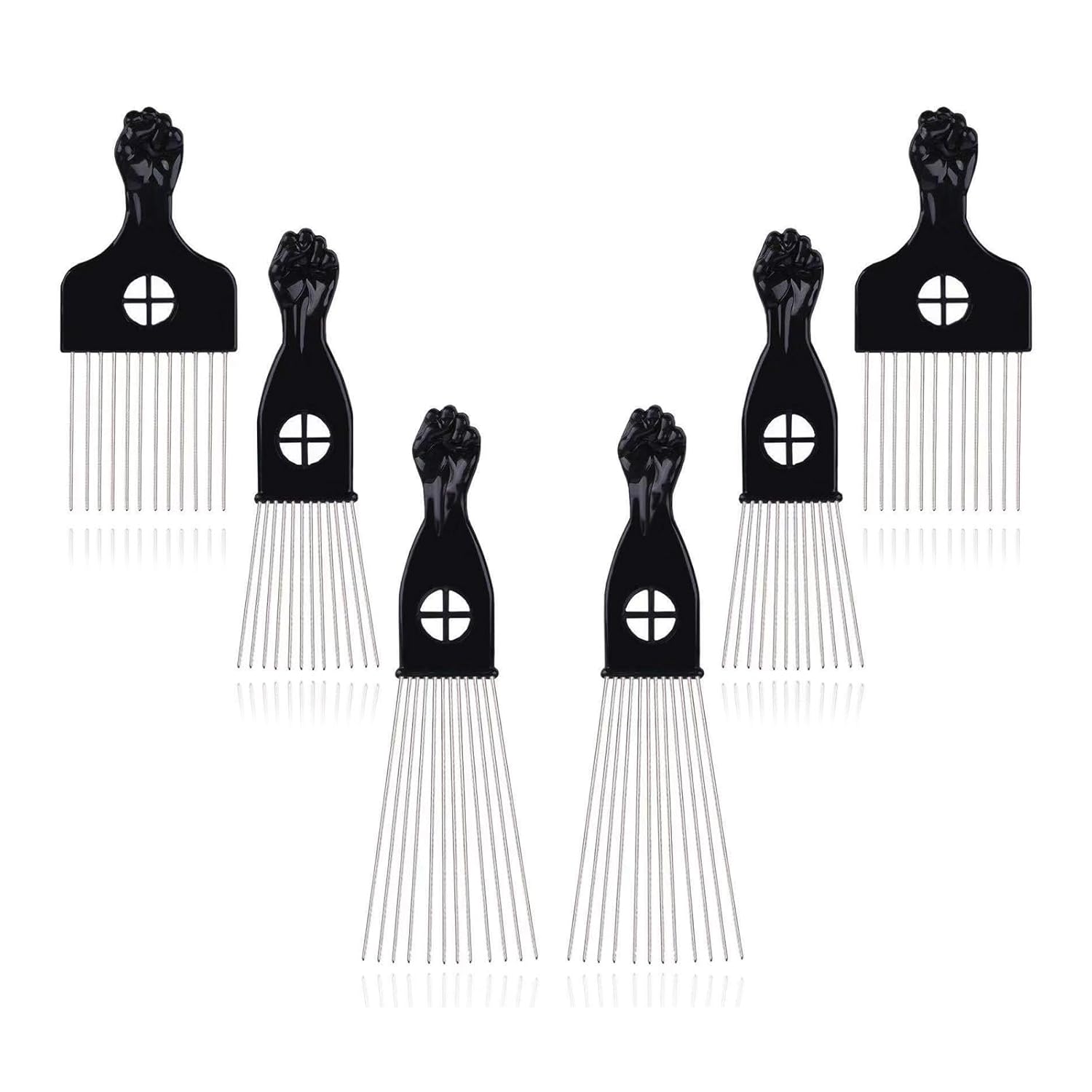 6Pcs Afro Picks Metal Hair Combs, 3 Sizes Steel Teeth Hair Pick for Curly, Coily, Natural Hair, Detangling & Styling Comb for Men Women (Black)
