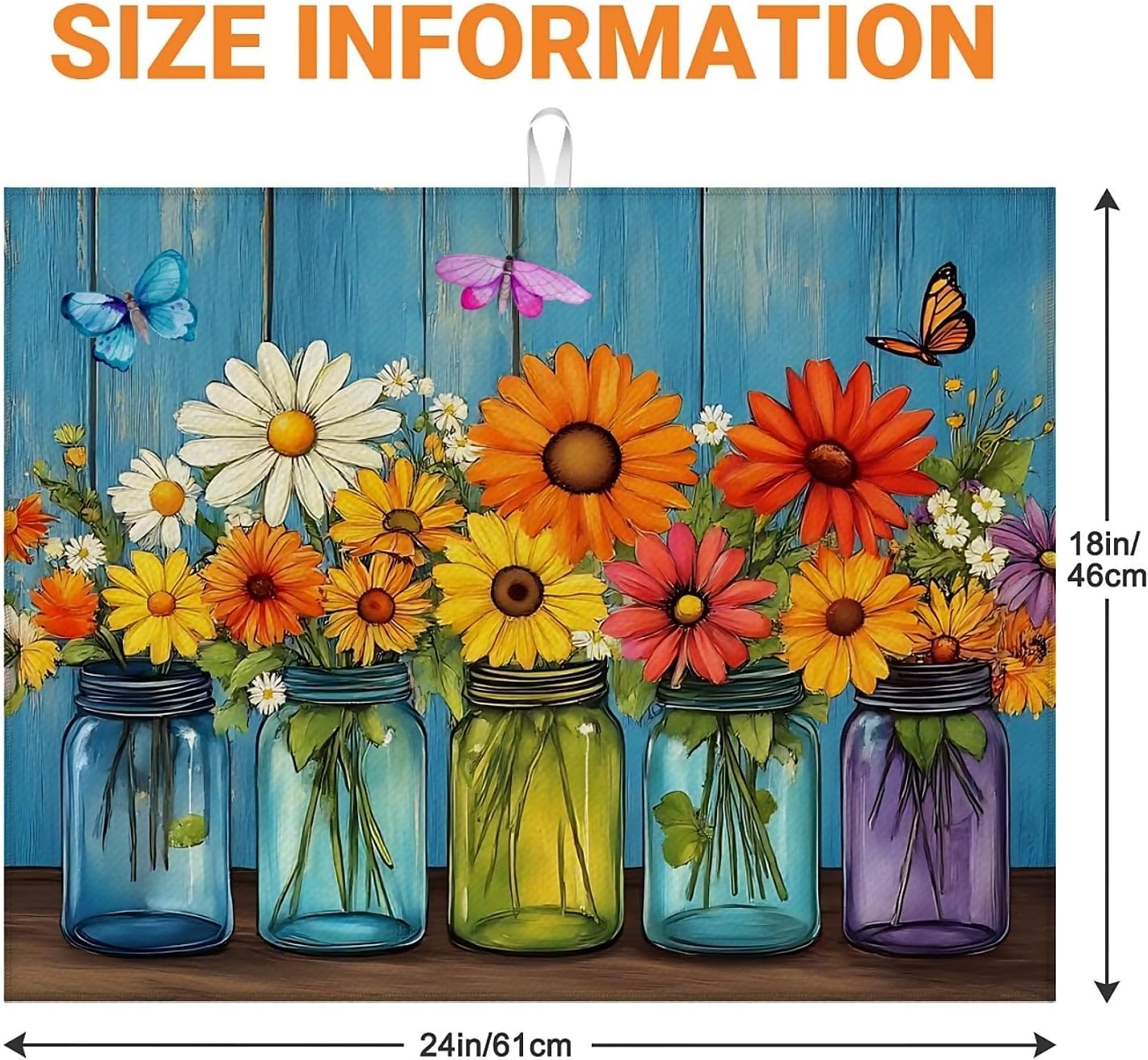 Dish Drying Mat For Kitchen Counter, Vintage Daisy Flower Microfiber Absorbent Dish Drainer Rack Pad Reusable Large 18x24in Drying Mat