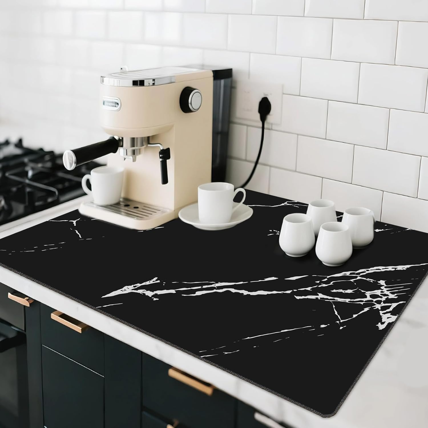 Dish Drying Mat for Kitchen Counter, 24"x16" Coffee Mat Bar Accessories, Hide Stain, Rubber Backed, Absorbent, Fit Under Coffee Maker, Espresso Machine, Pot, Dish Rack (Black)