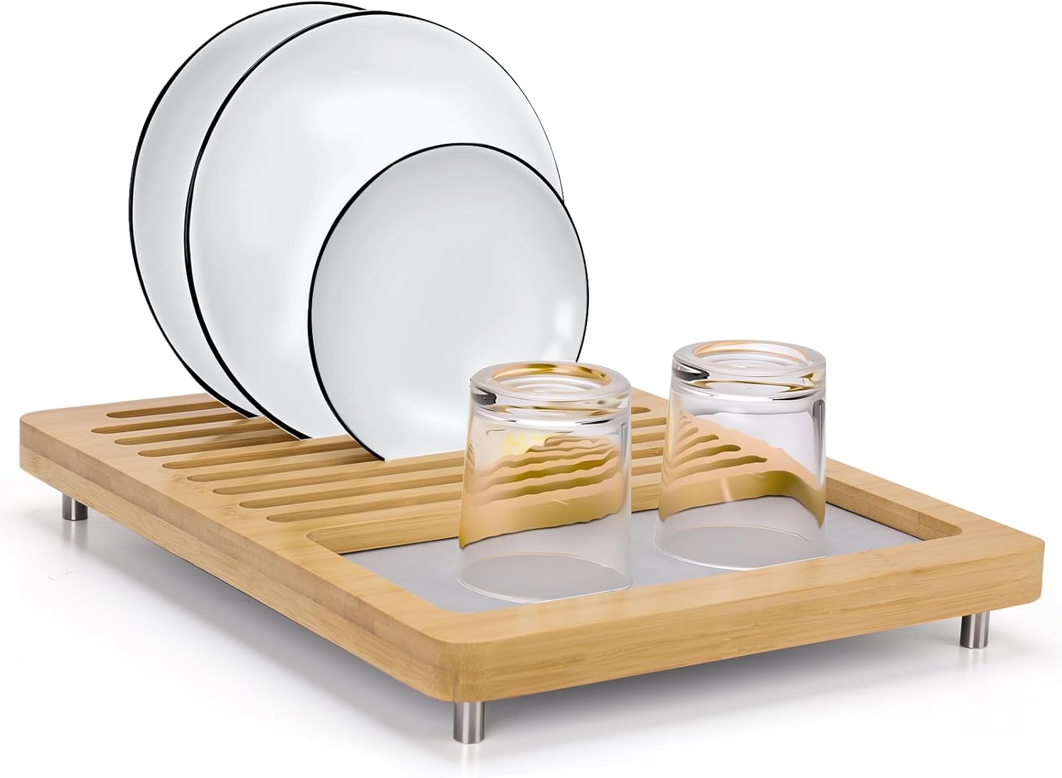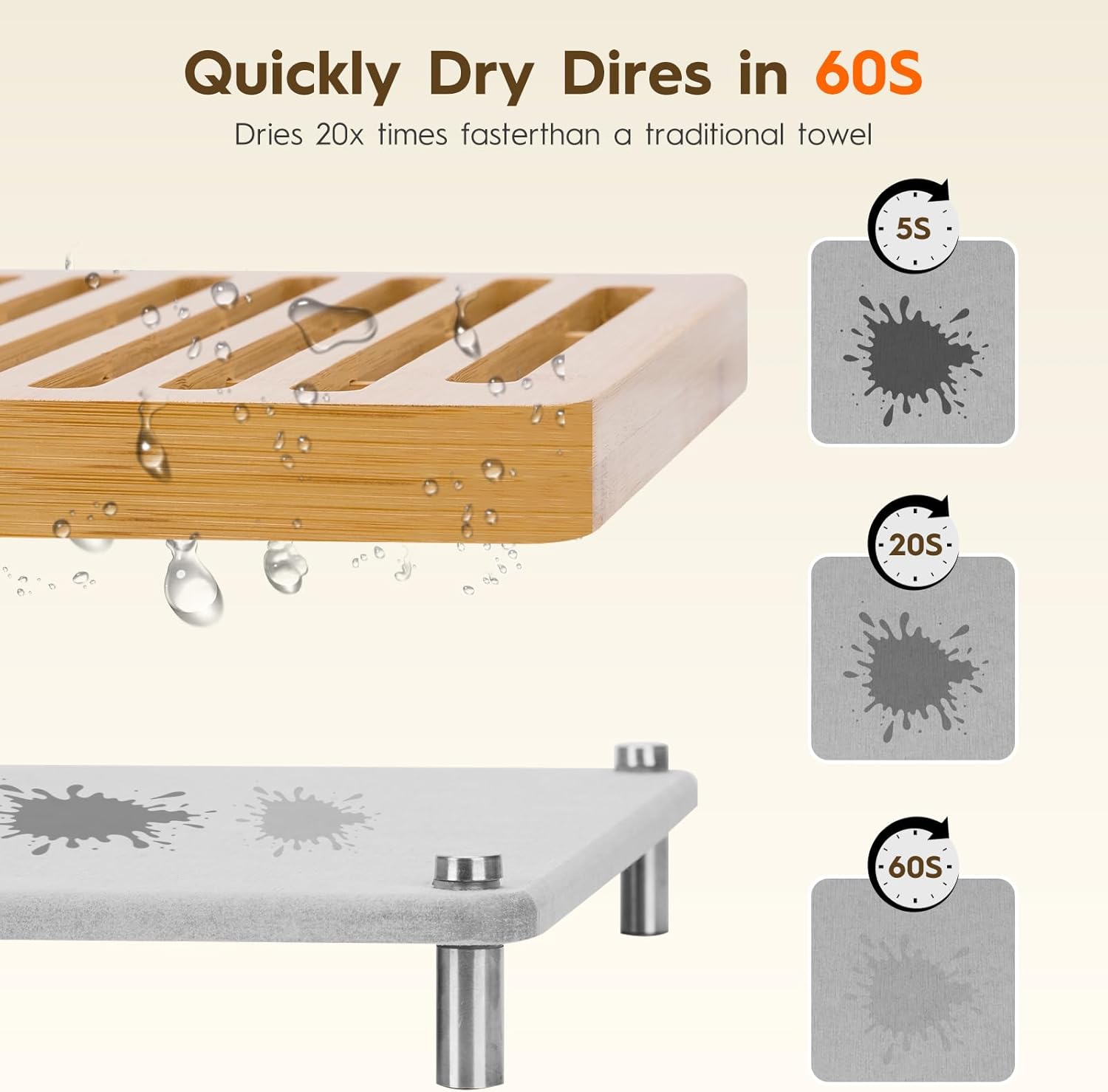 - 2.【2-in-1 Multi-Functional Design】: Not just a dish drying stone mat, this versatile product also serves as a bamboo drying rack for organizing tableware, utensils, or small kitchen items. Its thoughtful design helps maintain order, making your kitchen neater and more efficient