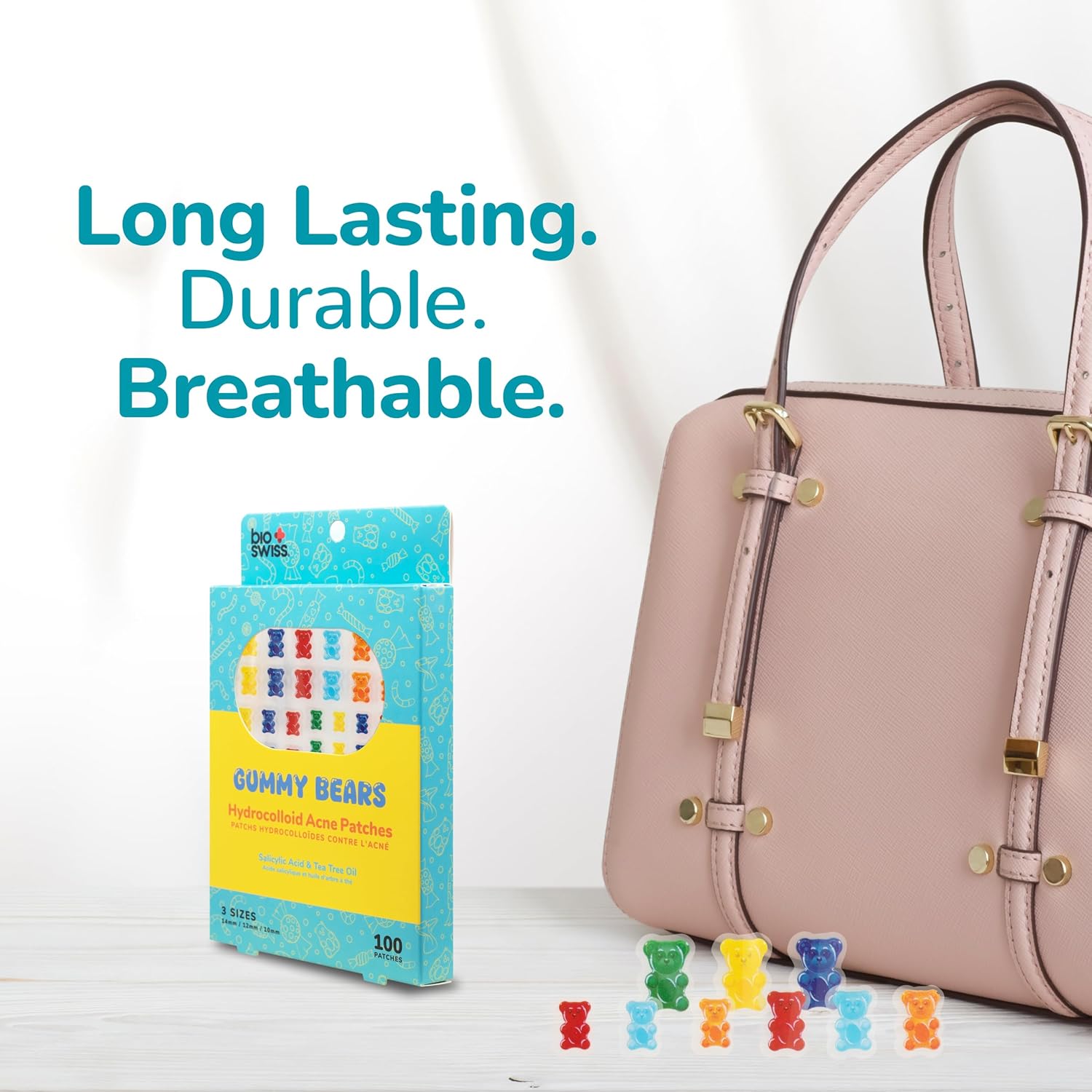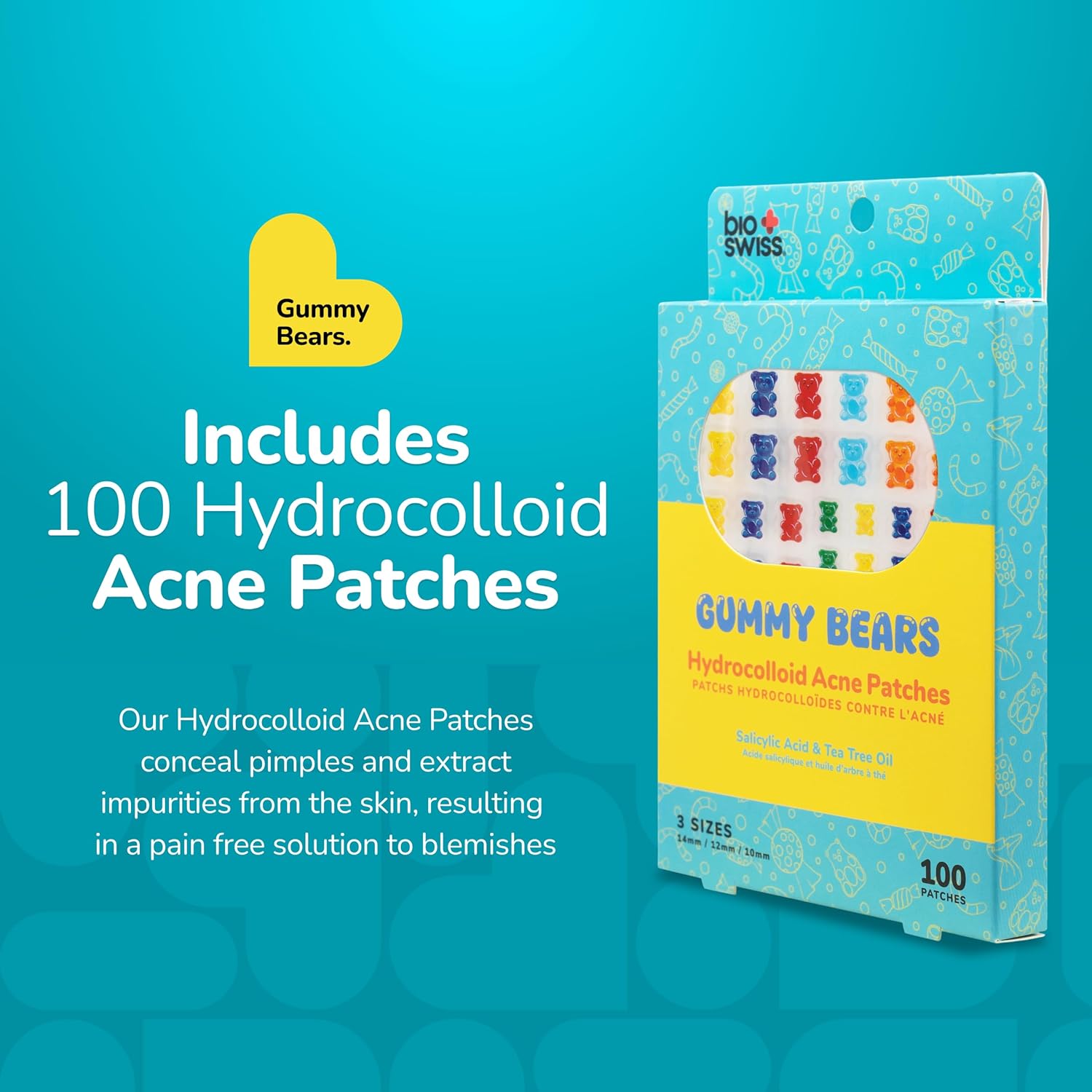 BioSwiss Pimple Patches, Gummy Bears Patch for Zits and Blemishes, Hydrocolloid Spot Stickers for Face and Skin, 100 Count