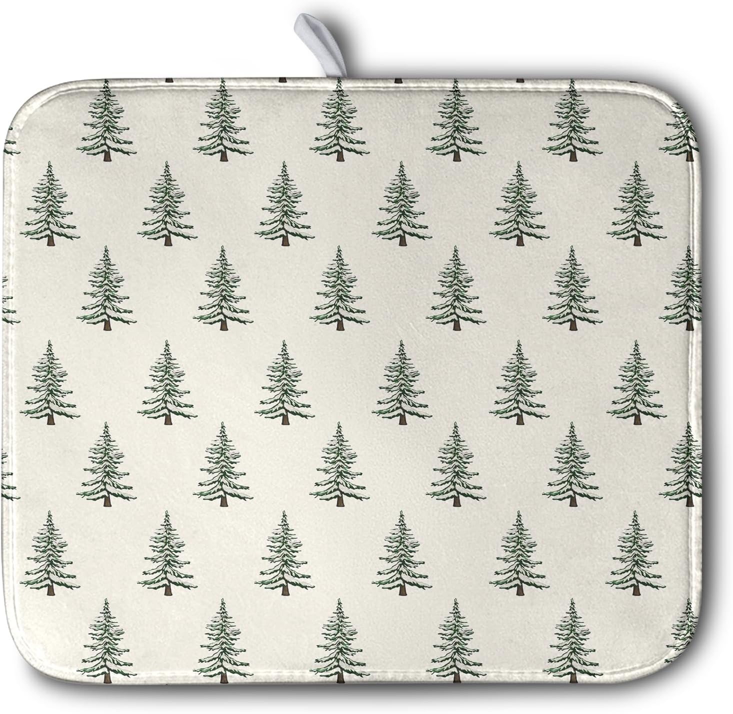 Christmas Tree Dish Drying Mat Winter Xmas Holiday Drying Mats Microfiber Absorbent Dishes Drying Pad Reusable Washable Kitchen Countertop Protector Dish Drainer Rack Mat 16x18 Inch