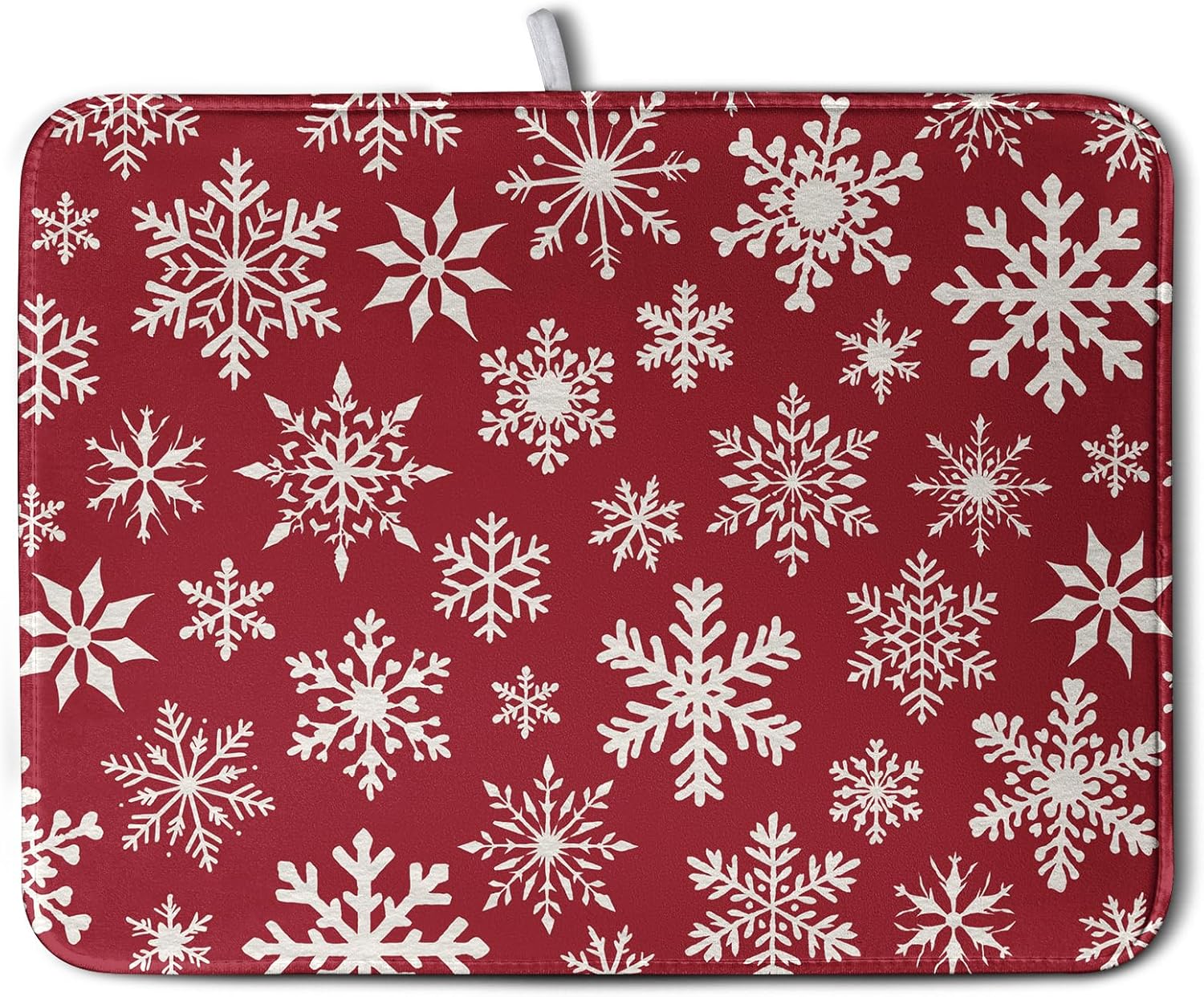 - Multifunctional Pad: Beautiful print on surface side, and reverses to a solid color. The winter dish drying mat for kitchen counter absorbs water well, great for air drying dishes, glasses, bottles, silverware, fruits and vegetables, adds stability when drying fragile items