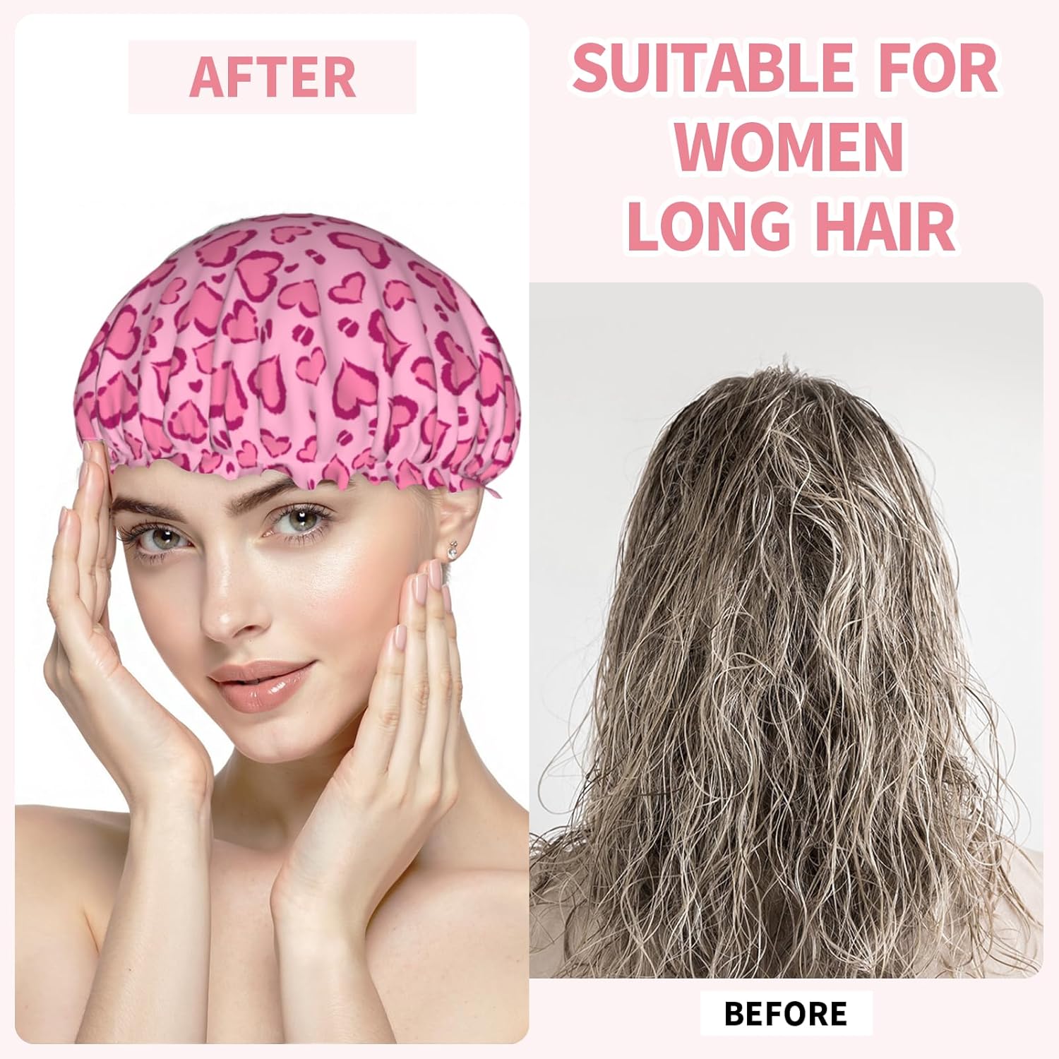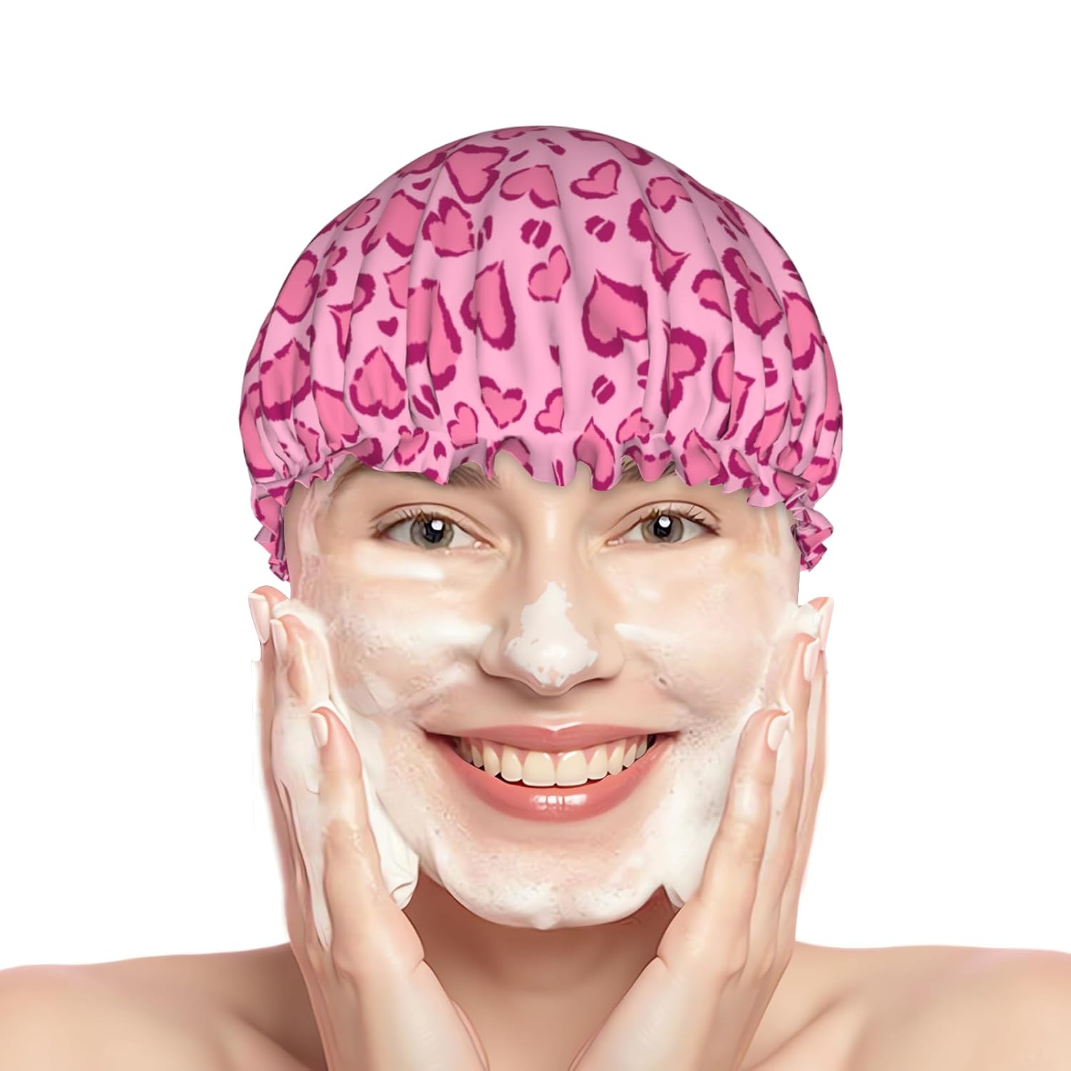 - Versatile Application: Our reusable hot pink heart leopard print shower caps can be used for showering, cooking, household cleaning, and spa sessions, keeping your hair dry and protecting it from dust and cooking fumes. This hot pink heart leopard print bath hair hat also fit for makeup, face washing, and applying facial mask, due to it suitable for all hair types-long, curly, voluminous or short, adding more convenience and beauty to your daily life.