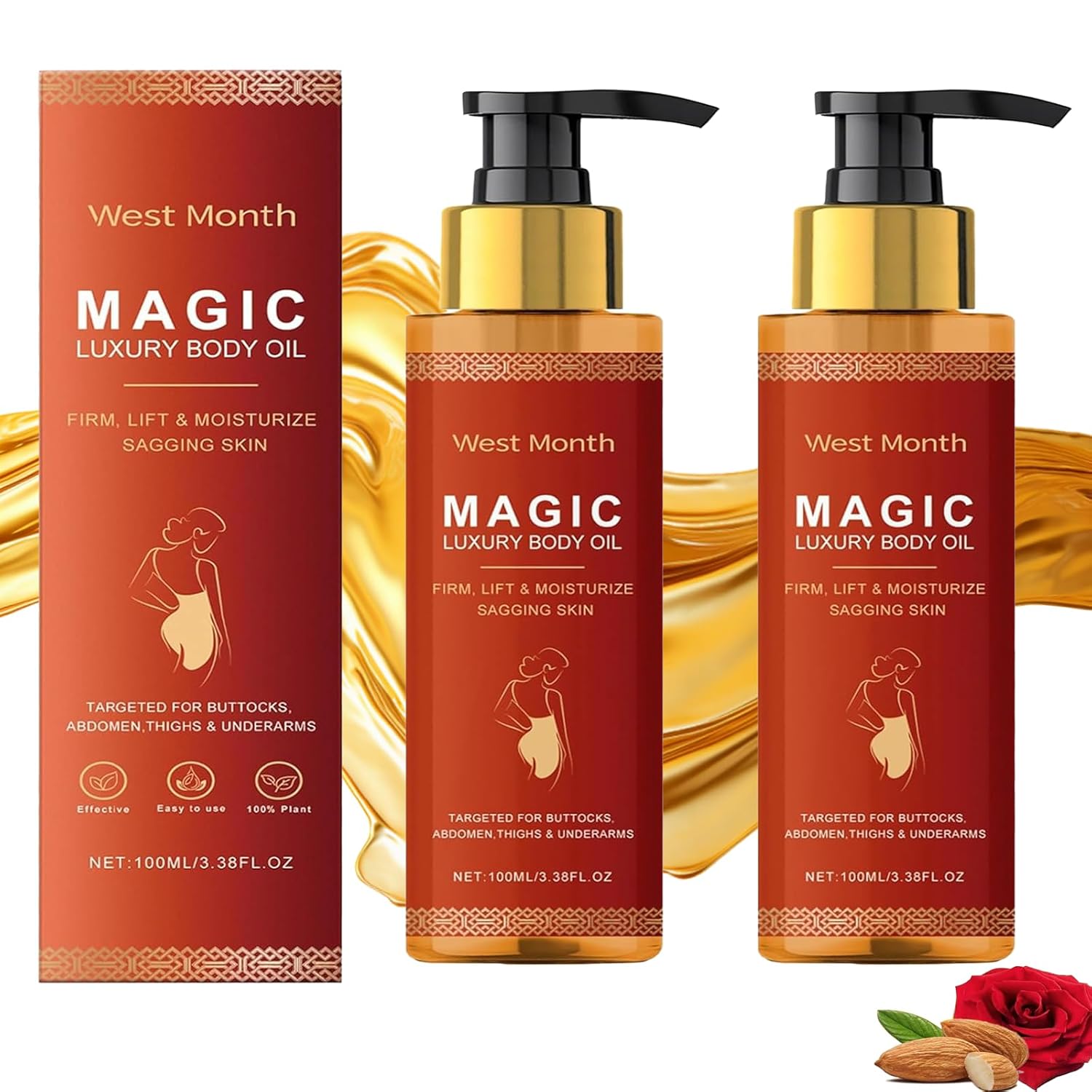 - Luxury Firming Body Oil: Magic Luxury Firming Body Oil not only helps to firm and lift the skin, reducing sagging, but also enhances youthful vitality, allowing you to confidently radiate radiance.