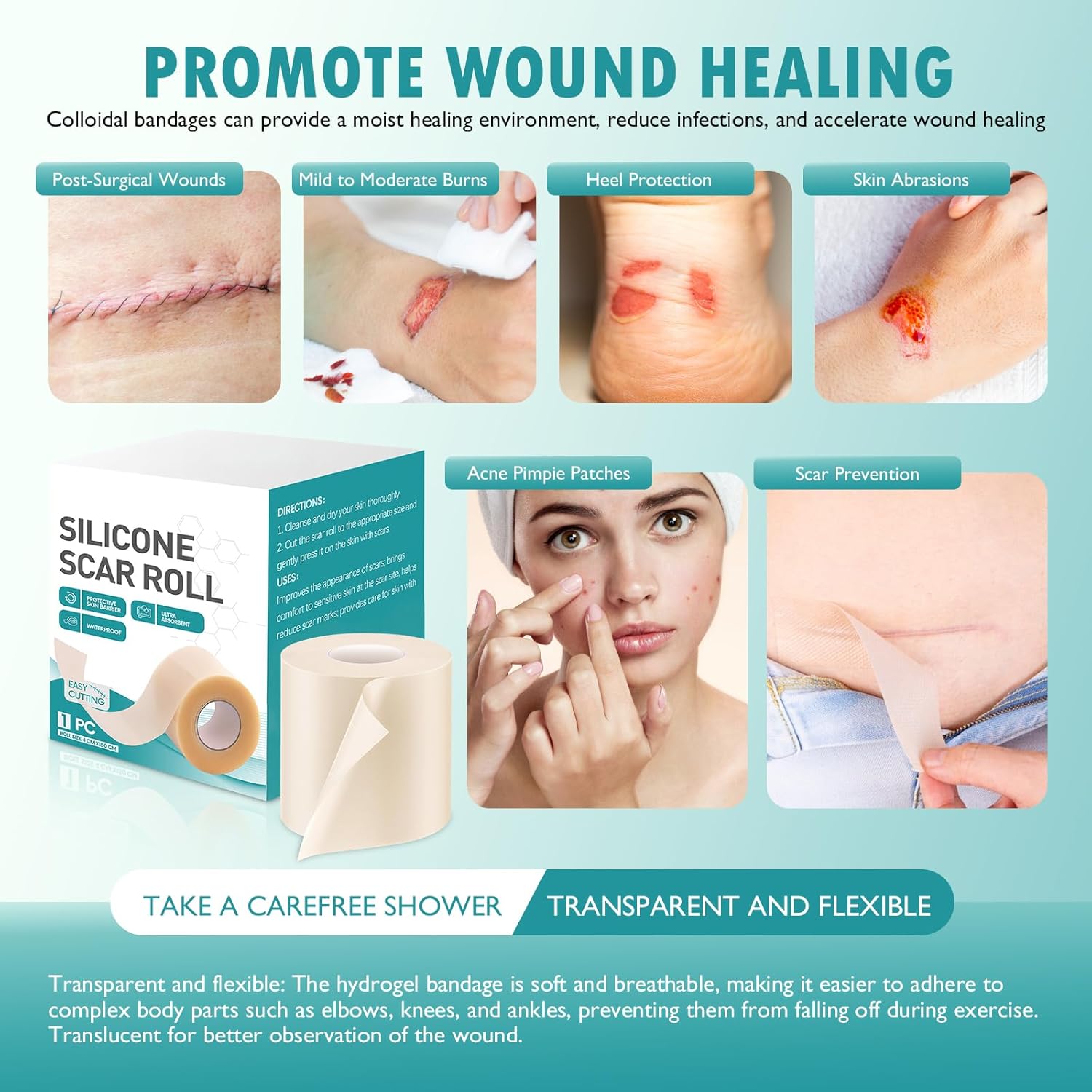 Hydrocolloid Roll for Wound Care,Hydrocolloid Patch Bandages with Self-Adhesive,Grade Hydrocolloid Roll with Self-Adhesive, Ultra Absorbent, Flexible & Waterproof (2in x 12ft) (1PCS)