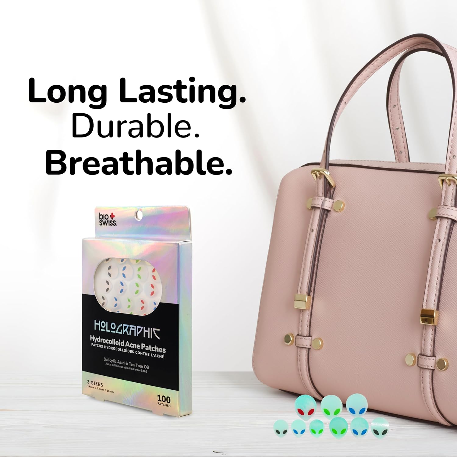 BioSwiss Pimple Patches, Holographic Alien Patch for Zits and Blemishes, Hydrocolloid Spot Stickers for Face and Skin, 100 Count