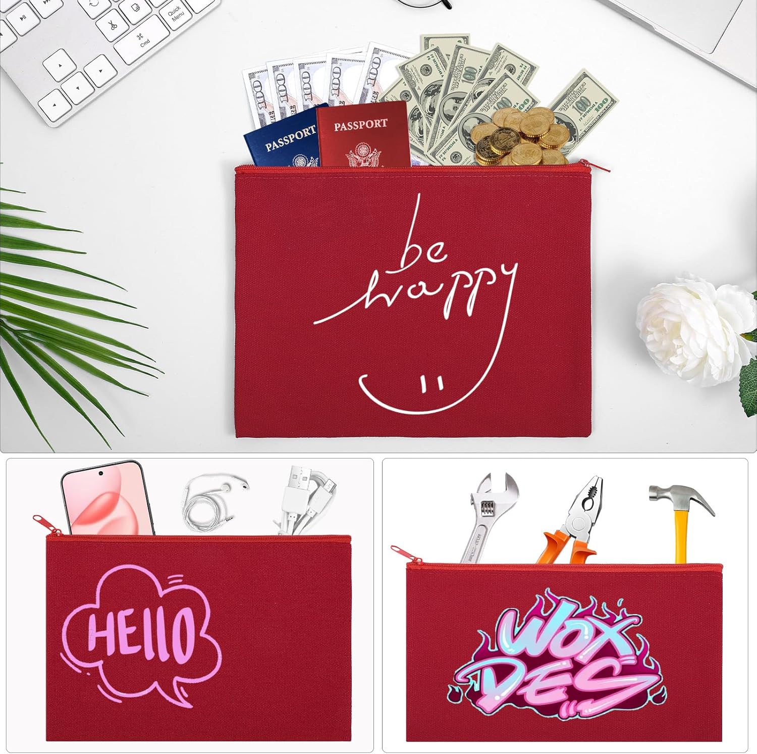 12 Pieces Cotton Canvas Makeup Bag, Multipurpose Cosmetic Bag with Zipper Travel Toiletry Pouch, Blank DIY Craft Bag (Red, S)