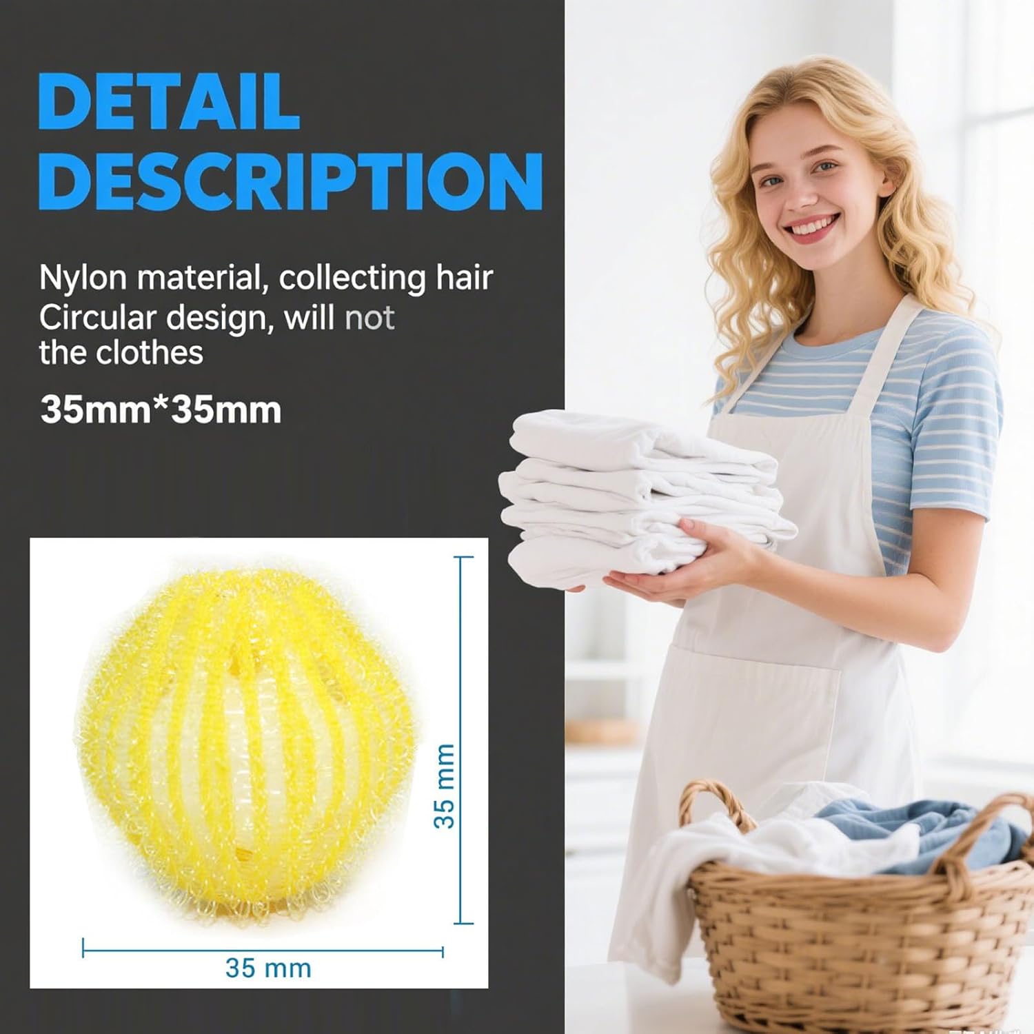 - π Stop Tangles & Protect Clothes Nylon laundry balls create space between garments, preventing twisting and reducing wear. Soft hooks gently collect lint, hair, and pet fur without damaging fabrics.