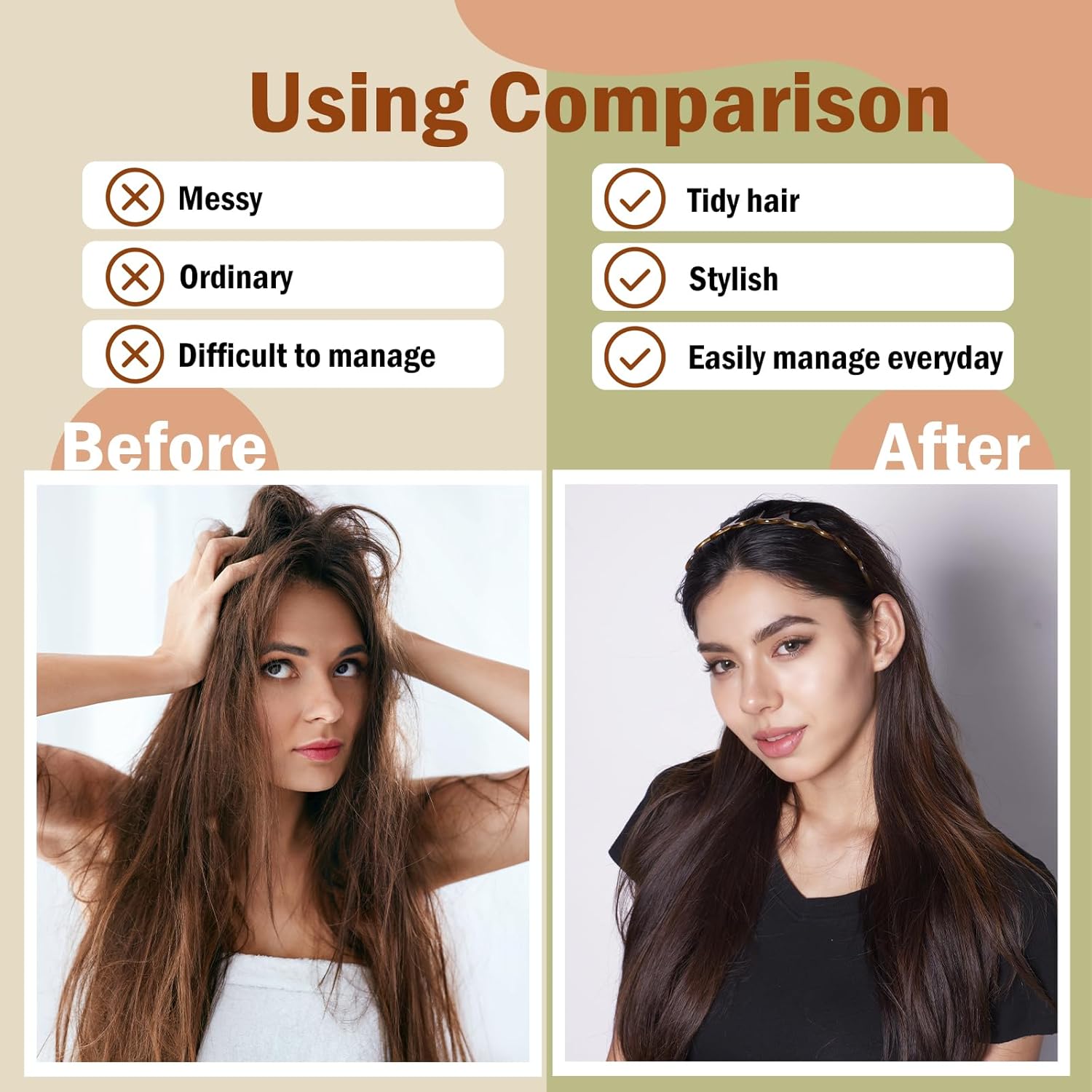 - Gentle on Hair: Crafted from high-quality, smooth plastic, this headband with teeth is designed to be non-damaging. Say goodbye to tangling, frizz, or hair breakage—enjoy comfort and durability all day long.