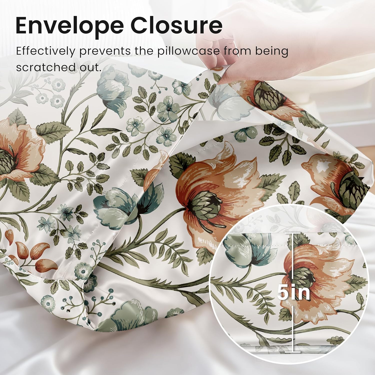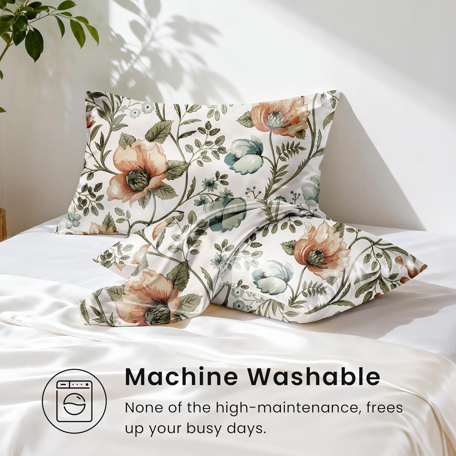 EXQ Home Satin Pillowcase for Hair and Skin Queen - Printed Summer Flowers Silk Pillow Cases 2 Pack 20x30 inches - Satin Pillow Cases Set of 2 with Envelope Closure, Gifts for Women Men