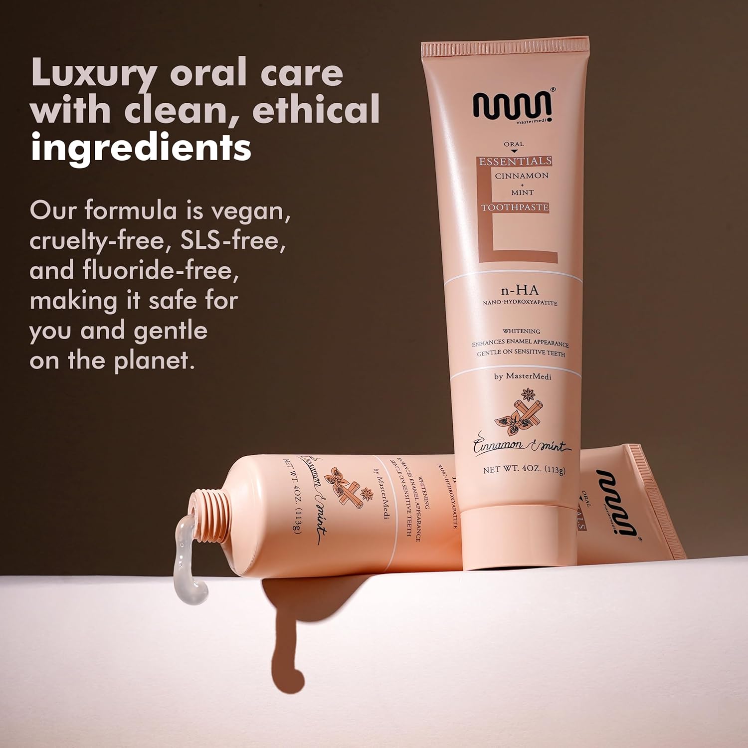 MasterMedi Nano Hydroxyapatite Toothpaste (Inspired by 10% nHA Formulas), Fluoride-Free, Whitening & Sensitivity Relief, Enamel Repair Support, SLS-Free, Xylitol, Mint & Cinnamon 4 Oz (Pack of 2)