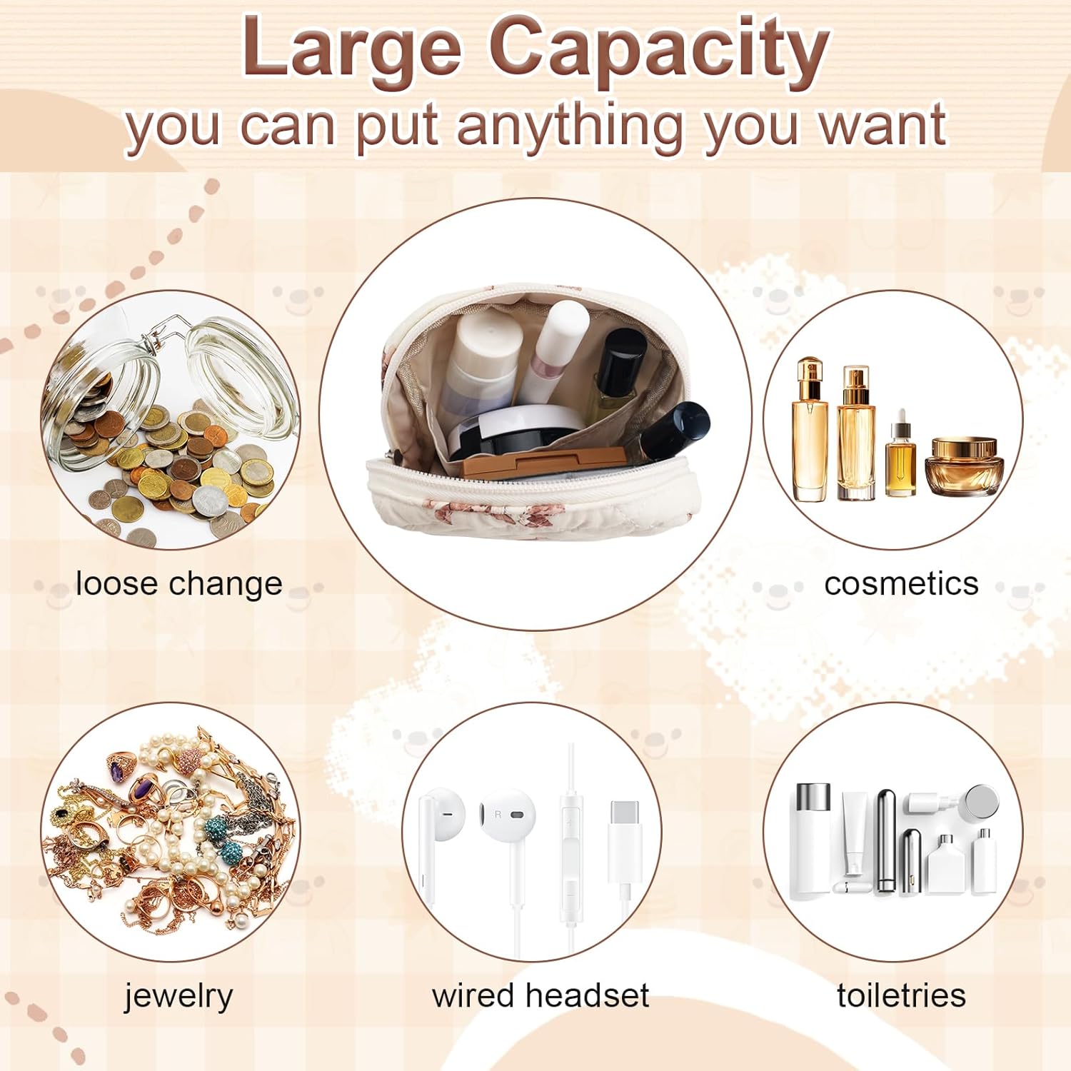- HIGH QUALITY OF SMALL MAKEUP BAG FOR TRAVEL: Our travel makeup bag is made of high quality cotton and hard zippers, which are colorfast, odorless and hard, and the small bear pattern color of our mini makeup bag is made of green natural dyes. The makeup organizer bag has a beautiful and stylish appearance, and the interior is spacious enough to hold a lot of travel essentials, making it a quality and practical small makeup pouch for purse