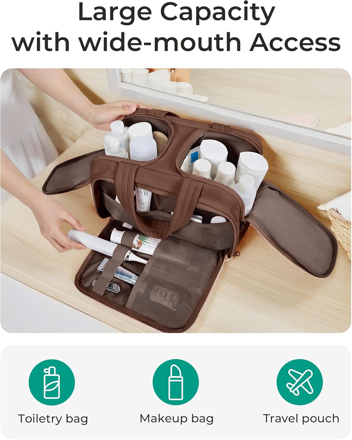 BAGSMART Travel Toiletry Bag, Puffy Toiletry Bag for Women, Wide-open toiletry bags for traveling, Large Travel Cosmetic Makeup Bag Organizer for Accessories,Toiletrie (Coffee Brown)