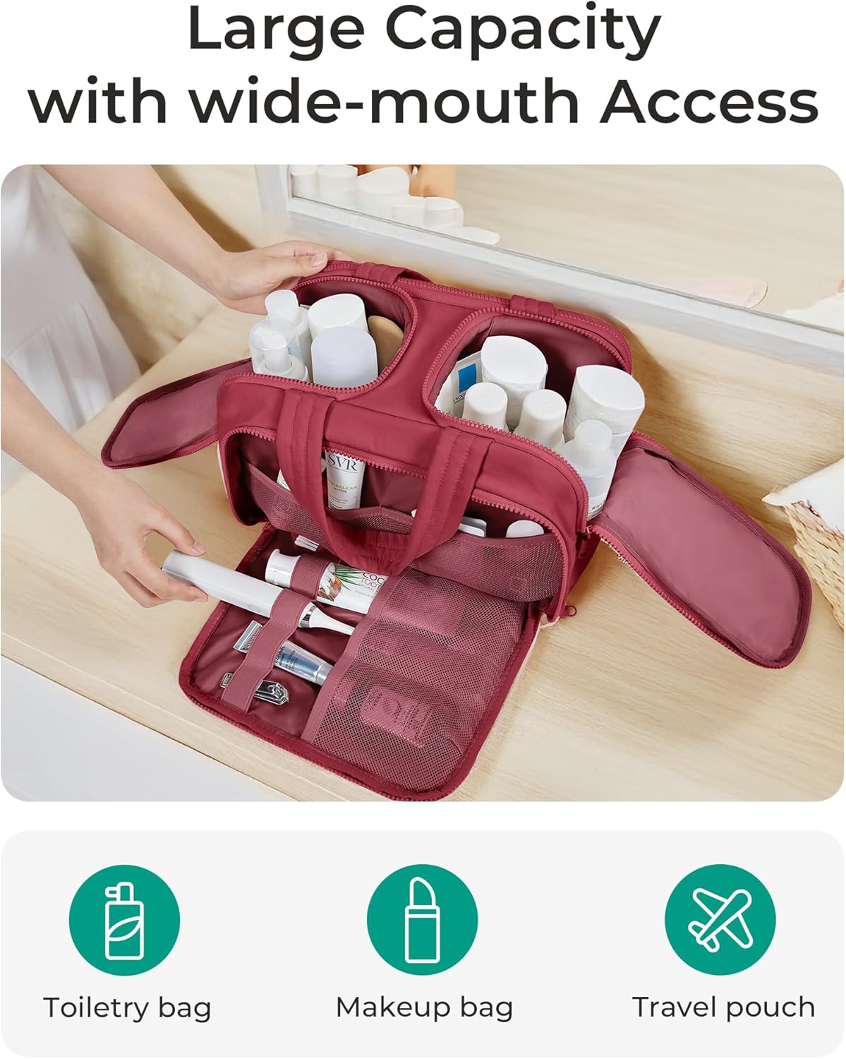 BAGSMART Travel Toiletry Bag, Puffy Toiletry Bag for Women, Wide-open toiletry bags for traveling, Large Travel Cosmetic Makeup Bag Organizer for Accessories,Toiletrie (Vintage Berry)