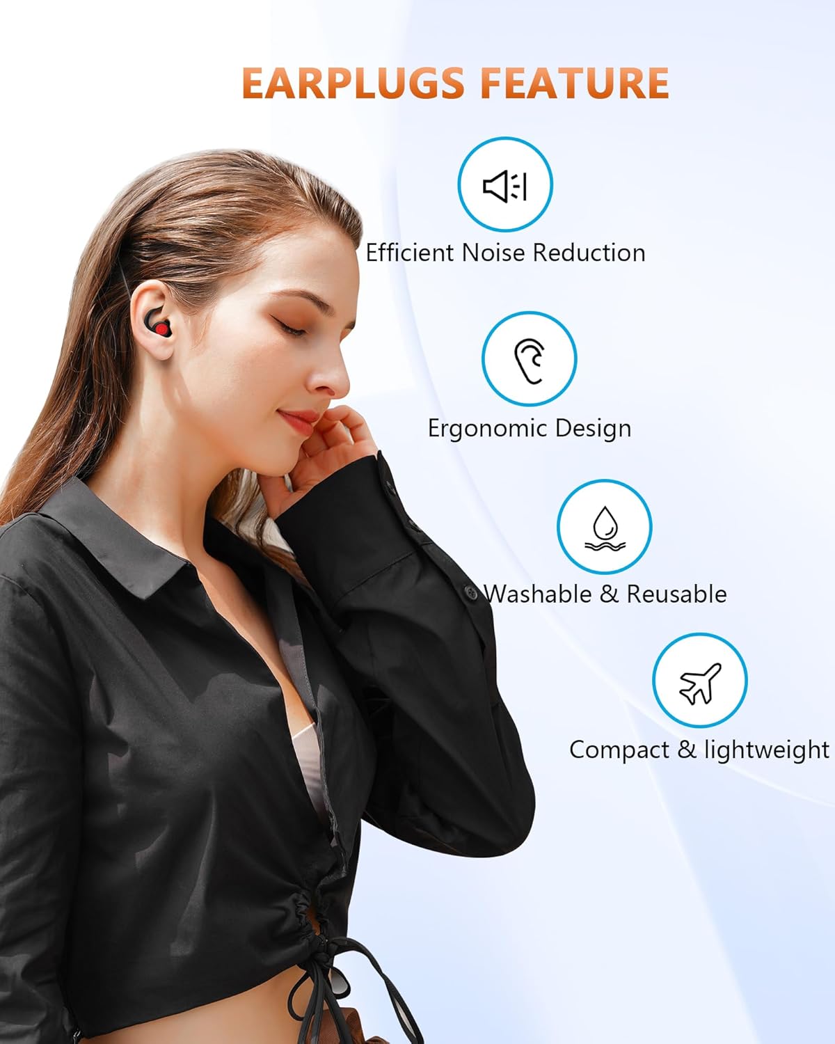 Noise Reduction Earplugs, 25dB Sound Blocking, Silicone Comfort Fit, Black