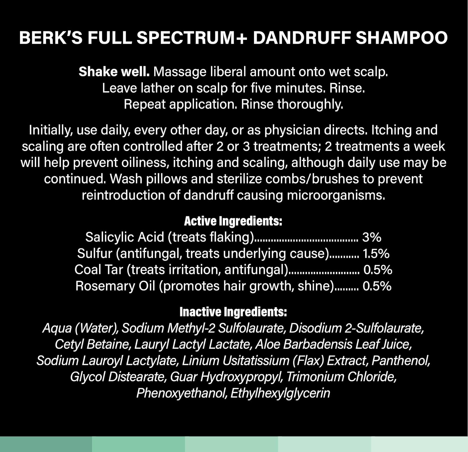 - CONTROLS SCALP FUNGUS: Berk's gets right to the cause of dandruff by controlling the fungus that causes dandruff.