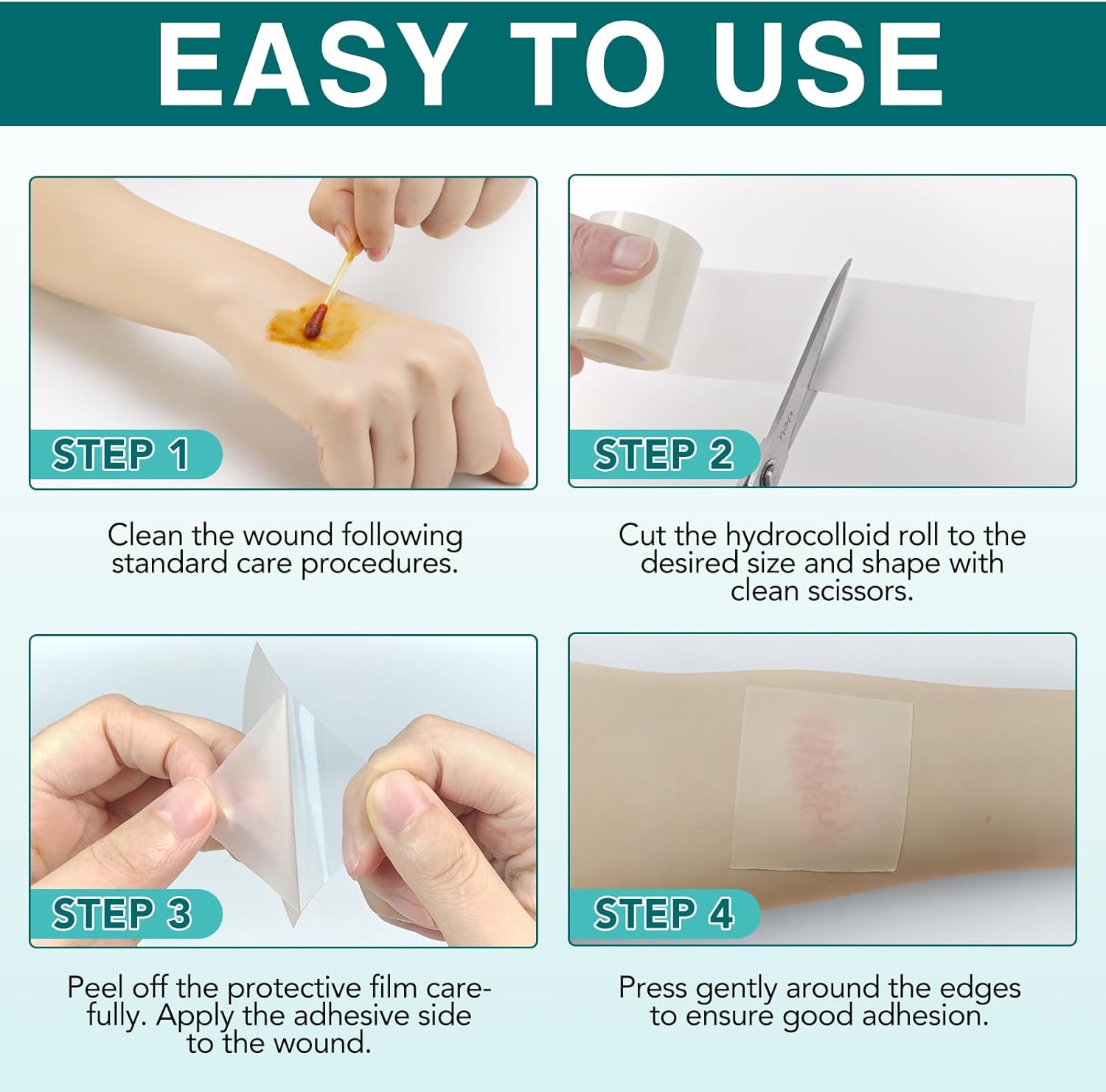 Hydrocolloid Roll for Wound Care (2in x 11.8ft) Large Medical-Grade Hydrocolloid Patch Bandages with Self-Adhesive, Ultra Absorbent & Waterproof, DIY Size Shape, First Aid Kit Essential